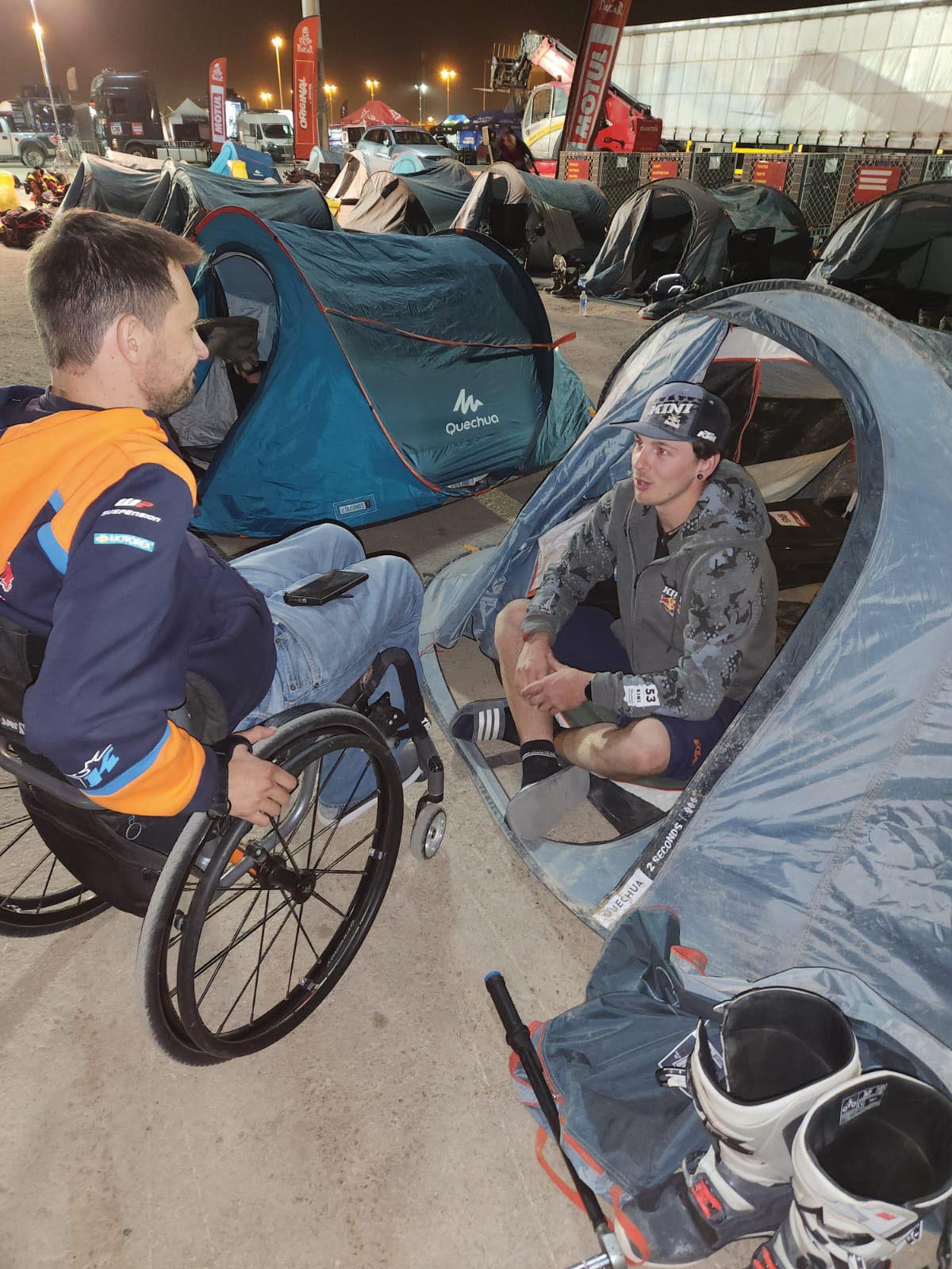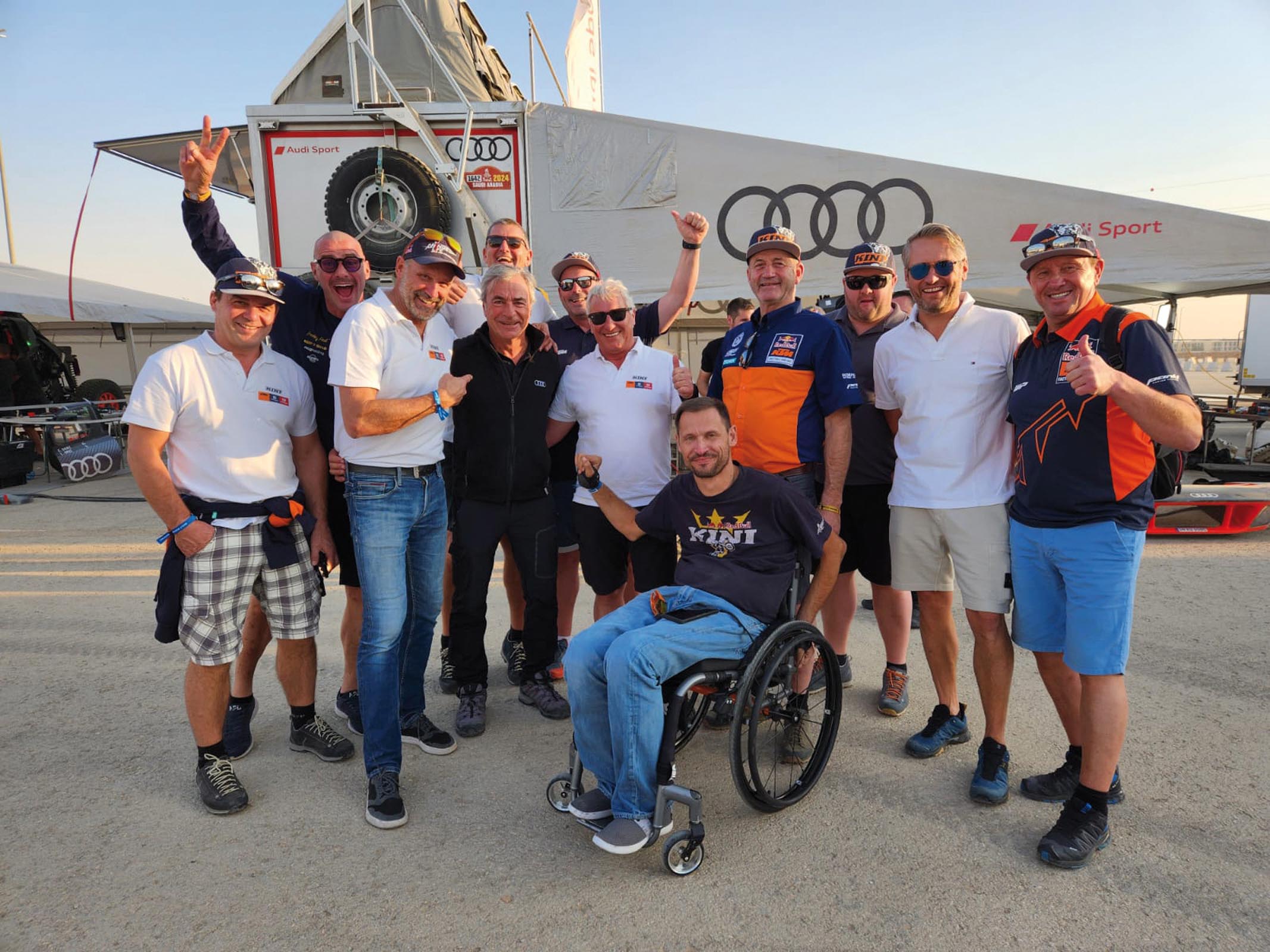 Nach dieser Etappe kam dann die mentale Unterstützung aus der Heimat für Dakar Rookie Tobias Ebster gerade recht. Unter der Federführung von Heinz und Hannes Kinigadner stellte sich eine große Gruppe Zillertaler Rallye-Fans in Riad ein, um Tobias mit aller Kraft, Tipps und guten Wünschen zu unterstützen – Daumen drücken inclusive! Sogar der als „El Matador“ bekannte Veteran und zweifacher WRC-Weltmeister und einer der größten spanischen Offroad-Rennfahrer aller Zeiten Carlos Sainz stattete der Zillertaler Abordnung einen Besuch ab und freut sich über Tobias Ebster sensationelle Leistung beim ersten Antreten bei der „Rallye Dakar“.