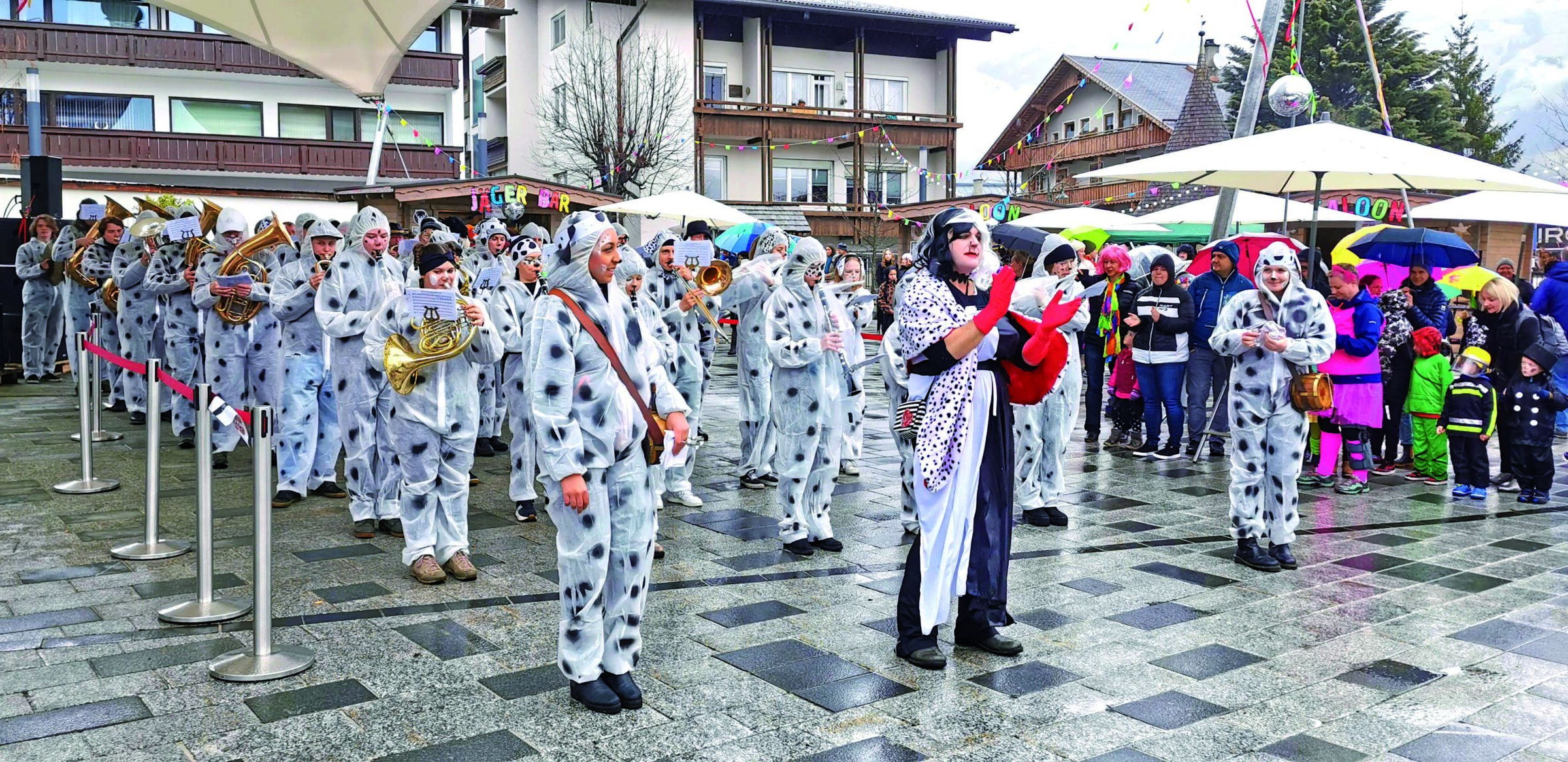 Trotz des regnerischen Wetters wurde die Veranstaltung von zahlreichen ZuschauerInnen begeistert aufgenommen. Pünktlich um 11.11 Uhr setzte sich der Umzug in Bewegung, und die Faschingsgruppen eroberten den Ortskern. Am Schlossplatz wurden unterhaltsame Darbietungen geboten, die bei den ZuschauerInnen für Begeisterung sorgten. Barbie und Ken statteten einen Besuch ab, das Badwandl wurde in die 80er Jahre zurückversetzt, die Zillertalbahn wurde mit Schnaps betrieben, und sogar ein kurzer Ausflug zu den Olympischen Spielen 2036 wurde geboten.
