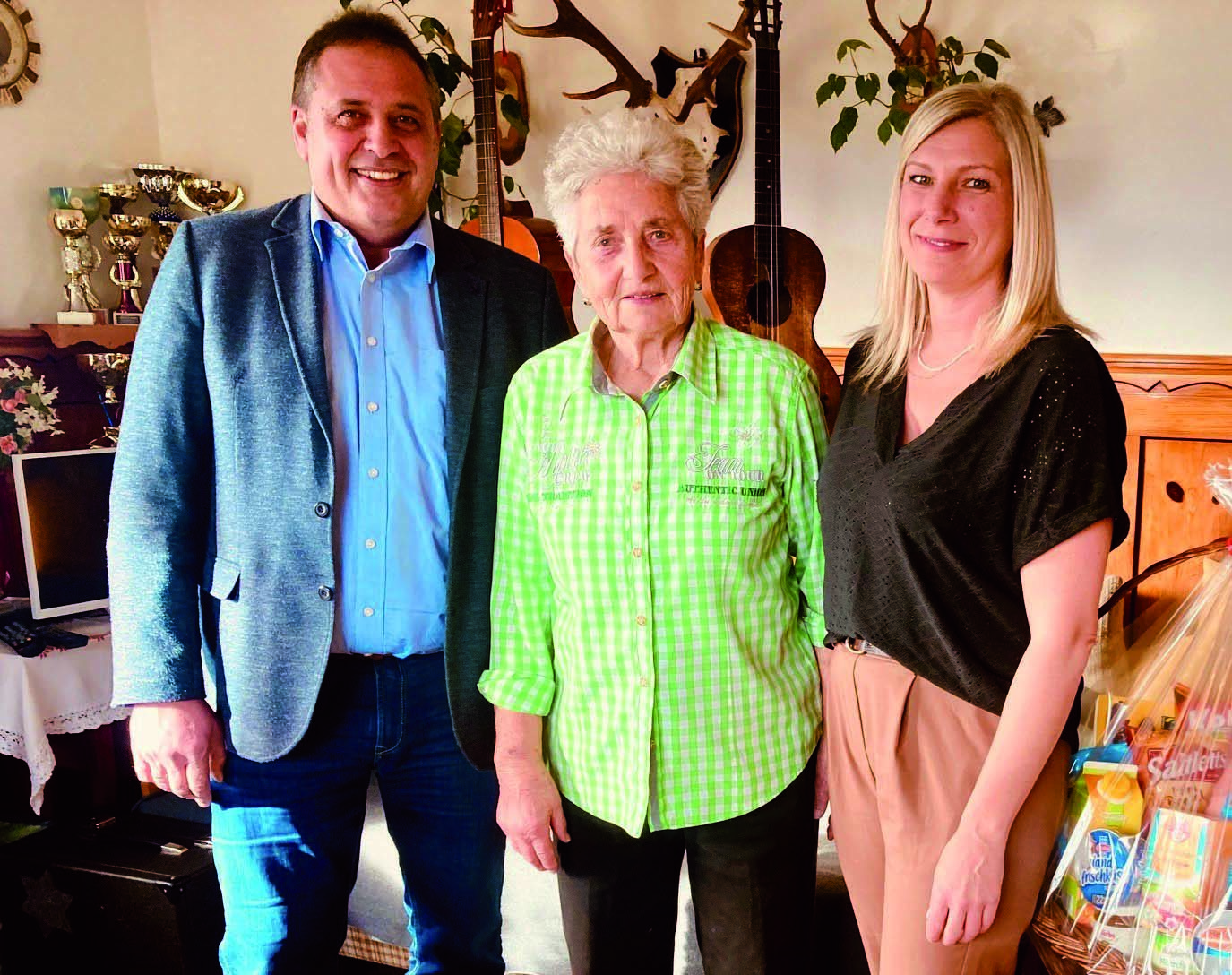 Natürlich ließen es sich auch Bgm. Alois Wurm und Bgm.-Stv. Veronika Dengg nicht nehmen, der Jubilarin recht herzlich zu gratulieren und ihr weiterhin viel Glück und Gesundheit zu wünschen.