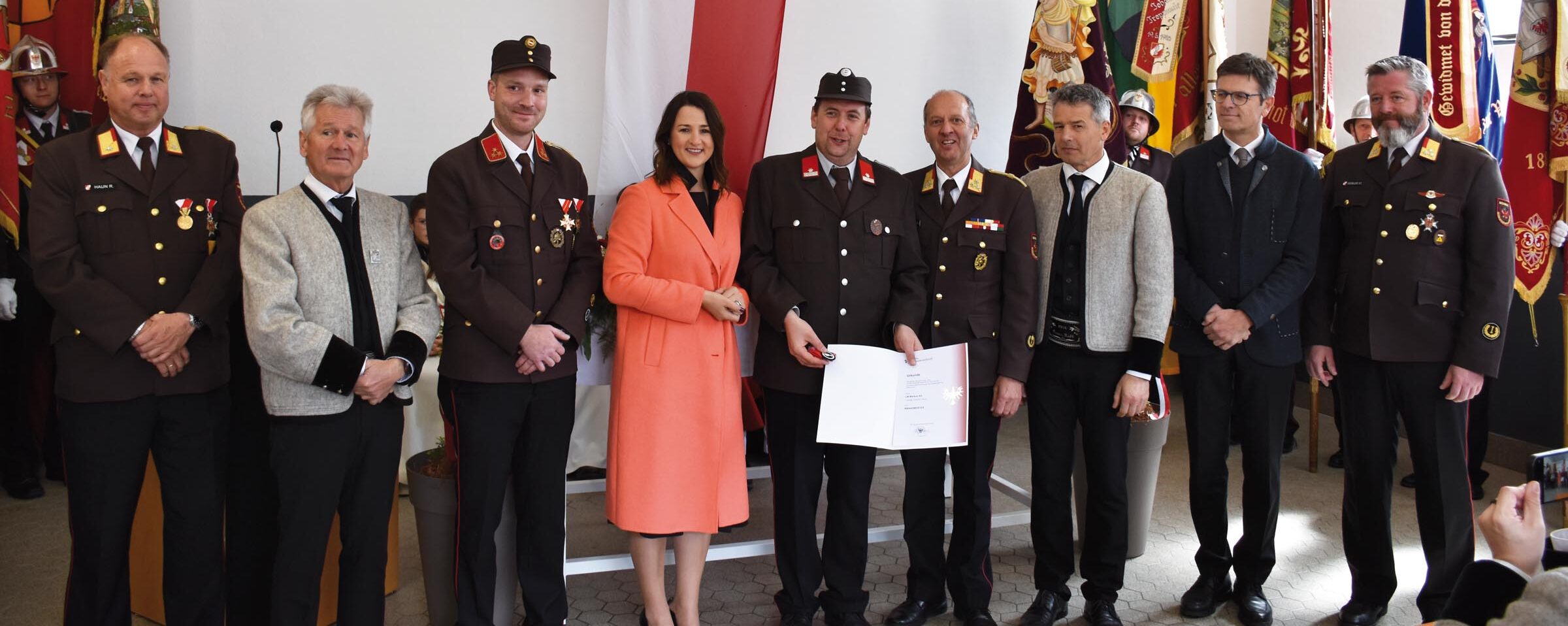 Anschließend wurden wohlverdiente Mitglieder vom Bezirksfeuerwehrverband Schwaz befördert und geehrt. Ein weiterer Höhepunkt war die Ausstattung von Bürgermeister Franz Kolb mit einer Jacke, um ihn in Einsatzfällen besser sichtbar zu machen. Franz Ortner wurde außerdem zum Ehrenmitglied der Feuerwehr Stumm ernannt.
