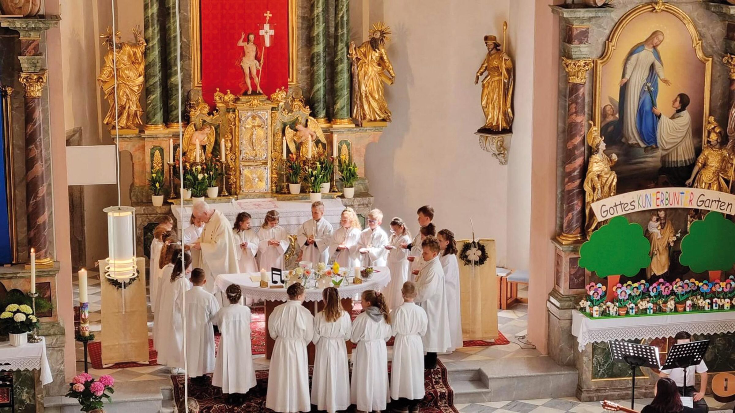 Die tiefe Bedeutung dieses Sakraments wurde in der Messe durch die ergreifende Gestaltung der Erstkommunionkinder zusammen mit ihren Lehrerinnen verstärkt.