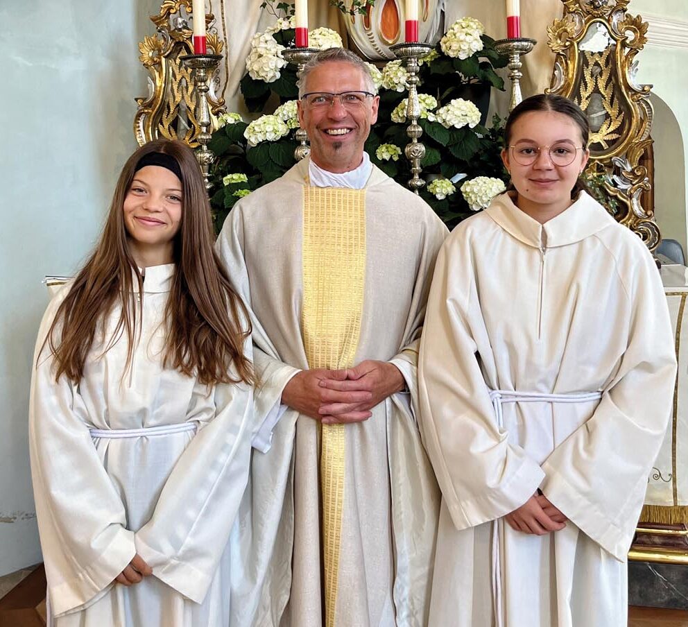 Eine große Freude hat er mit seinen neuen kleinen Aposteln, da diese voller Elan und Motivation in den Dienst der Kirche eintreten. Im Rahmen dieser Festlichkeit musste er sich leider auch von 2 Ministrantinnen verabschieden und durfte ihnen für ihren Einsatz und ihren treuen Dienst in den letzten 6 Jahren mit einer Urkunde und einem Abschiedsgeschenk die besten Wünsche mitgeben.