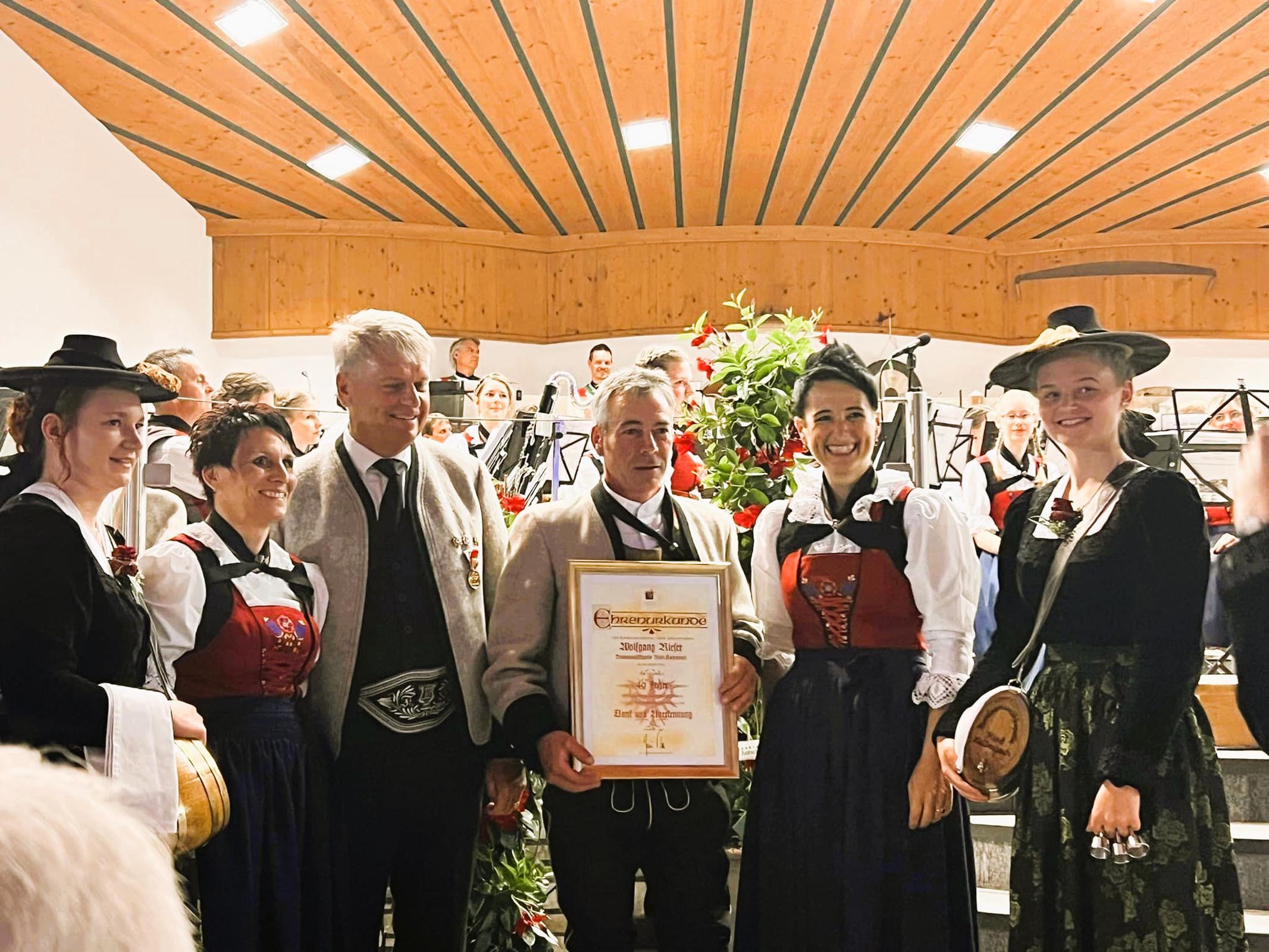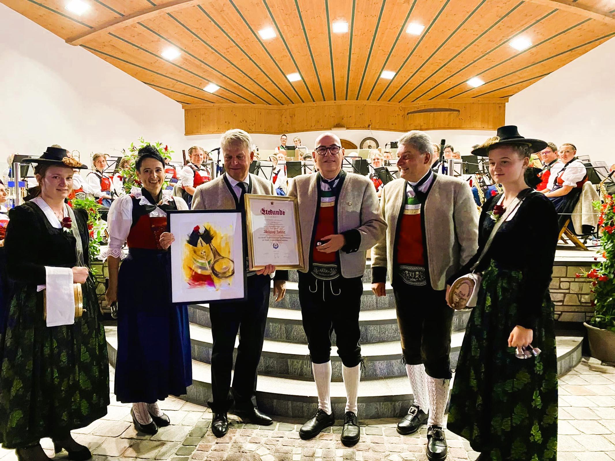 Und sehr viele Personen und Persönlichkeiten aus nah und fern folgten dieser Einladung. Im würdigen Rahmen des Konzertes wurde dem Ehepaar Margit und Rainer Leitner das Fördererabzeichen des Tiroler Blasmusikverbandes verliehen. Wolfgang Rieser wurde für 40-jährige Mitgliedschaft in der Kapelle geehrt und Wolfgang Jochner erhielt das silberne Verdienstzeichen des Blasmusikverbandes. Das Publikum bedankte sich bei den MusikantInnen, MarketenderInnen und dem Kapellmeister Michael Ausserladscheider nach dem abwechslungsreichen und kurzweiligen Programm mit großem Applaus und freute sich noch über die zwei Zugaben.