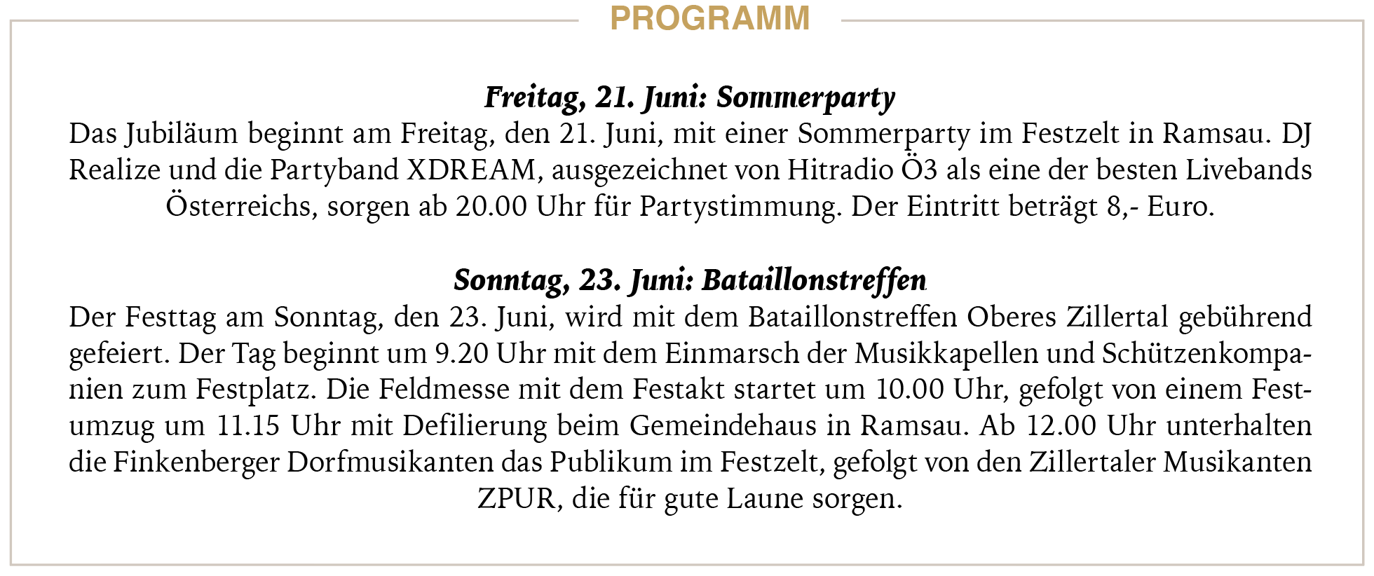 Die Schützenkompanie Ramsau feiert am kommenden Wochenende ihr 30-jähriges Bestehen mit einer Sommerparty und einem Schützenfest.