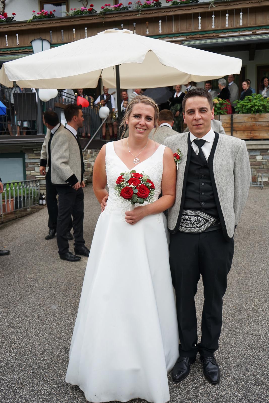Christoph und Madeleine Bradl, Hochzeitsfeier im Goglhof in Fügenberg, mit den Trauzeugen Helga und Hannes.