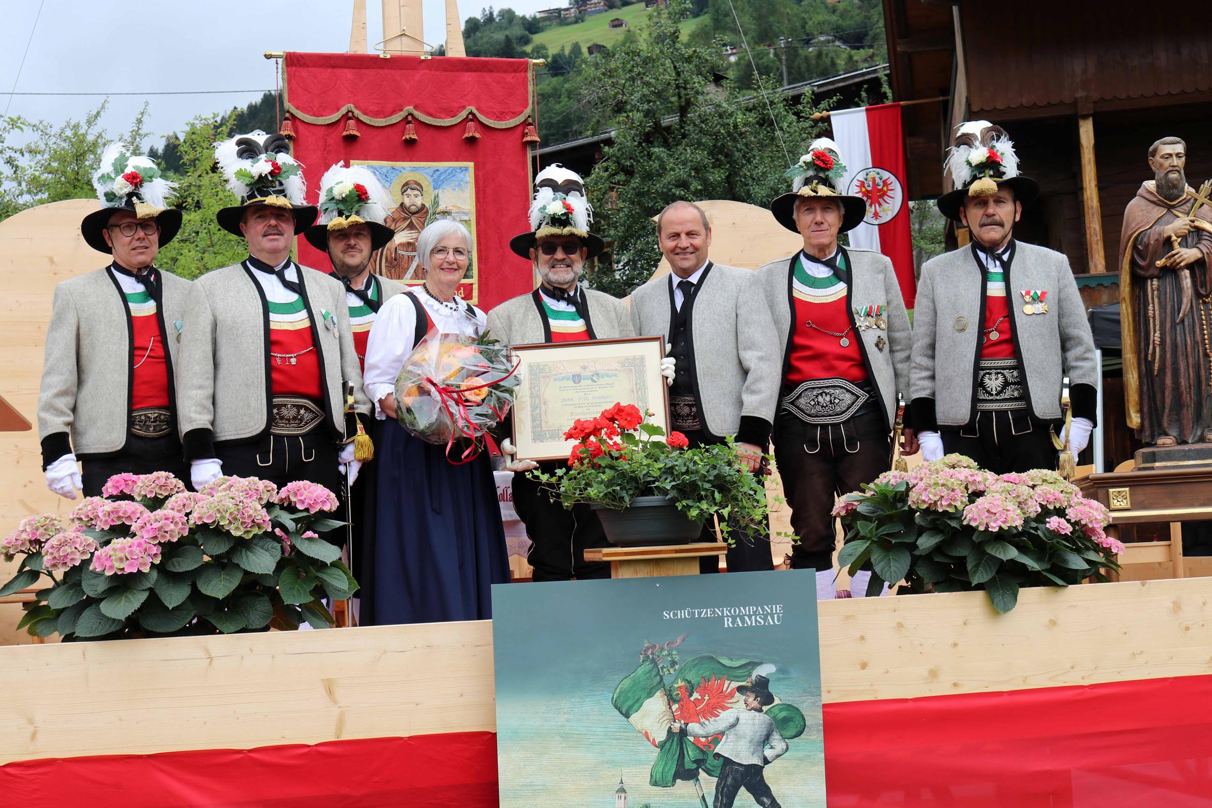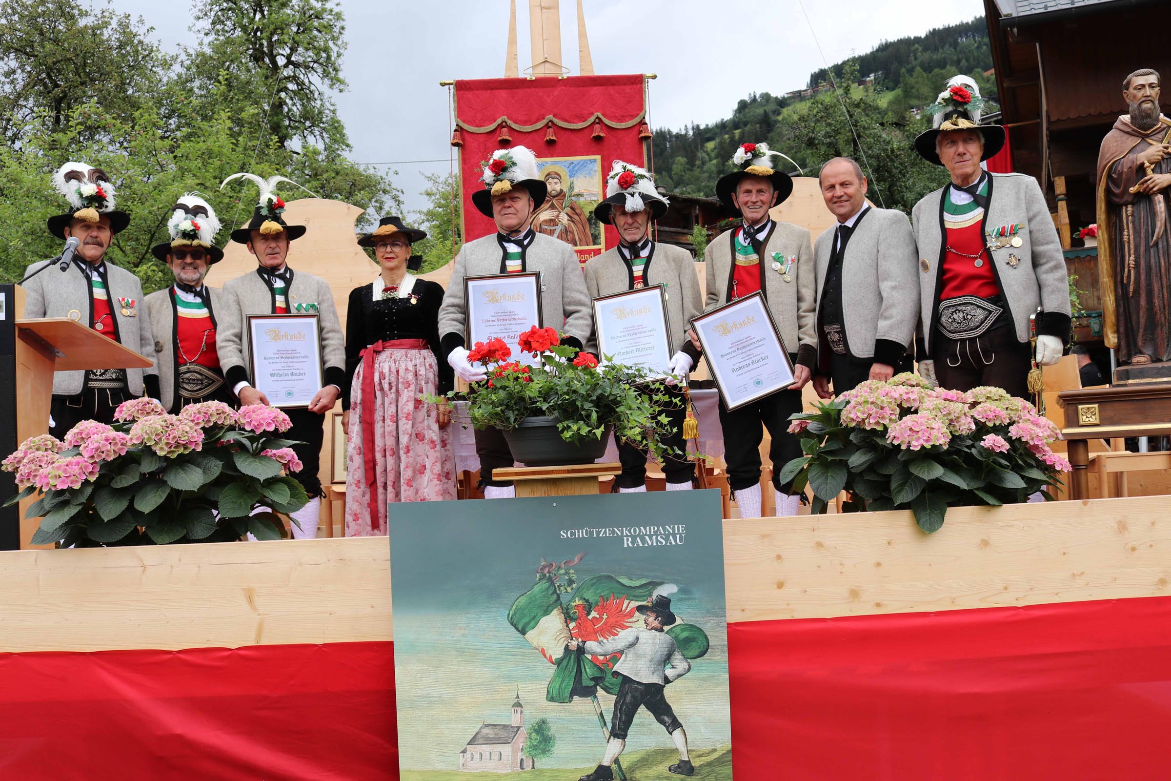 Bataillonskommandant Oberes Zillertal Fritz Sandhofer: Allen Ramsauer Marketenderinnen und Schützenkameraden, im Besonderen Hauptmann Georg Huber mit seinem Kompanieausschuss, spreche ich für ihre bisherige Tätigkeit meinen herzlichen Dank und meine Anerkennung aus.