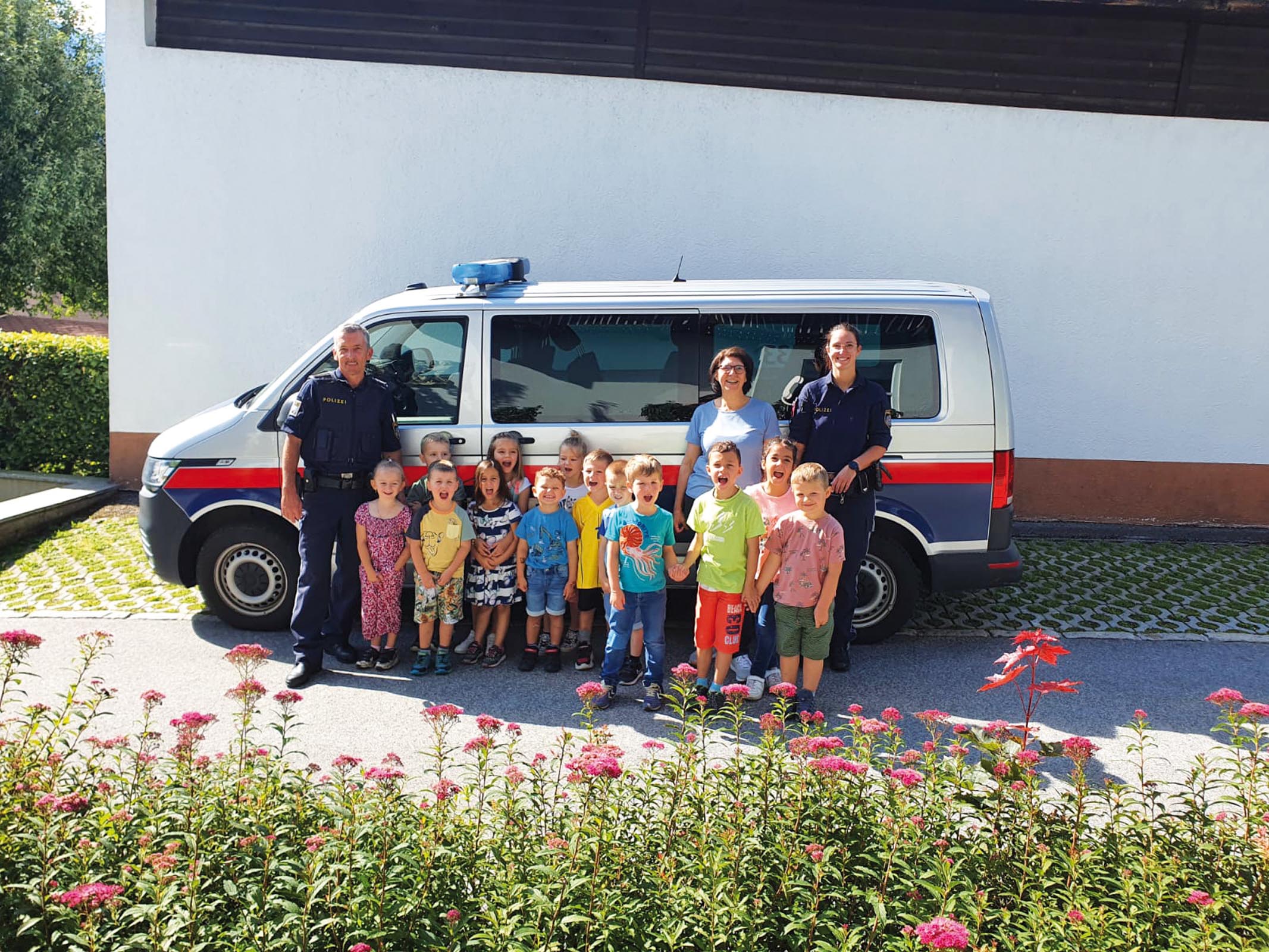 Ein weiterer Höhepunkt war der Besuch der Polizei im Kindergarten. Die Kinder hatten die Gelegenheit, alles über die Ausrüstung und Aufgaben eines Polizisten zu erfahren. Das war ein besonders aufregender Tag, von dem die Kinder noch oft erzählen.