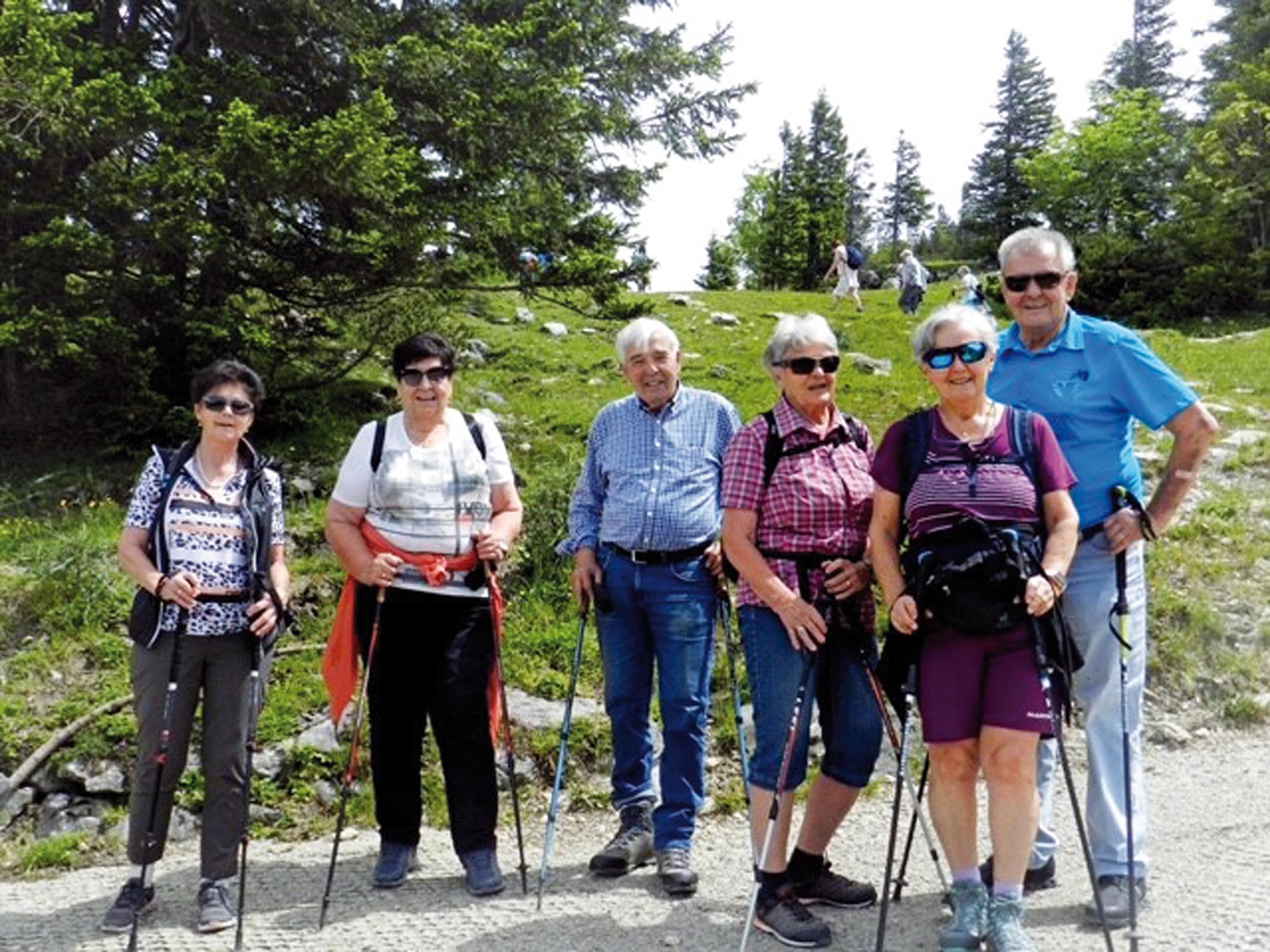 Das Ziel zur Mittagspause, die Steinlingalm, erreichten wir über den aussichtsreichen Höhenwanderweg. Dieser Ort stellt einen Identifaktionspunkt für den Chiemgau dar; eine Gedenkkapelle erinnert an die Kriegstoten und der Anstieg zum weithin sichtbaren Chiemgaukreuz am Gipfel der Kampenwand beginnt hier. Der „uhabigste“ unserer Gruppe hat den Aufstieg dorthin auch gewagt.