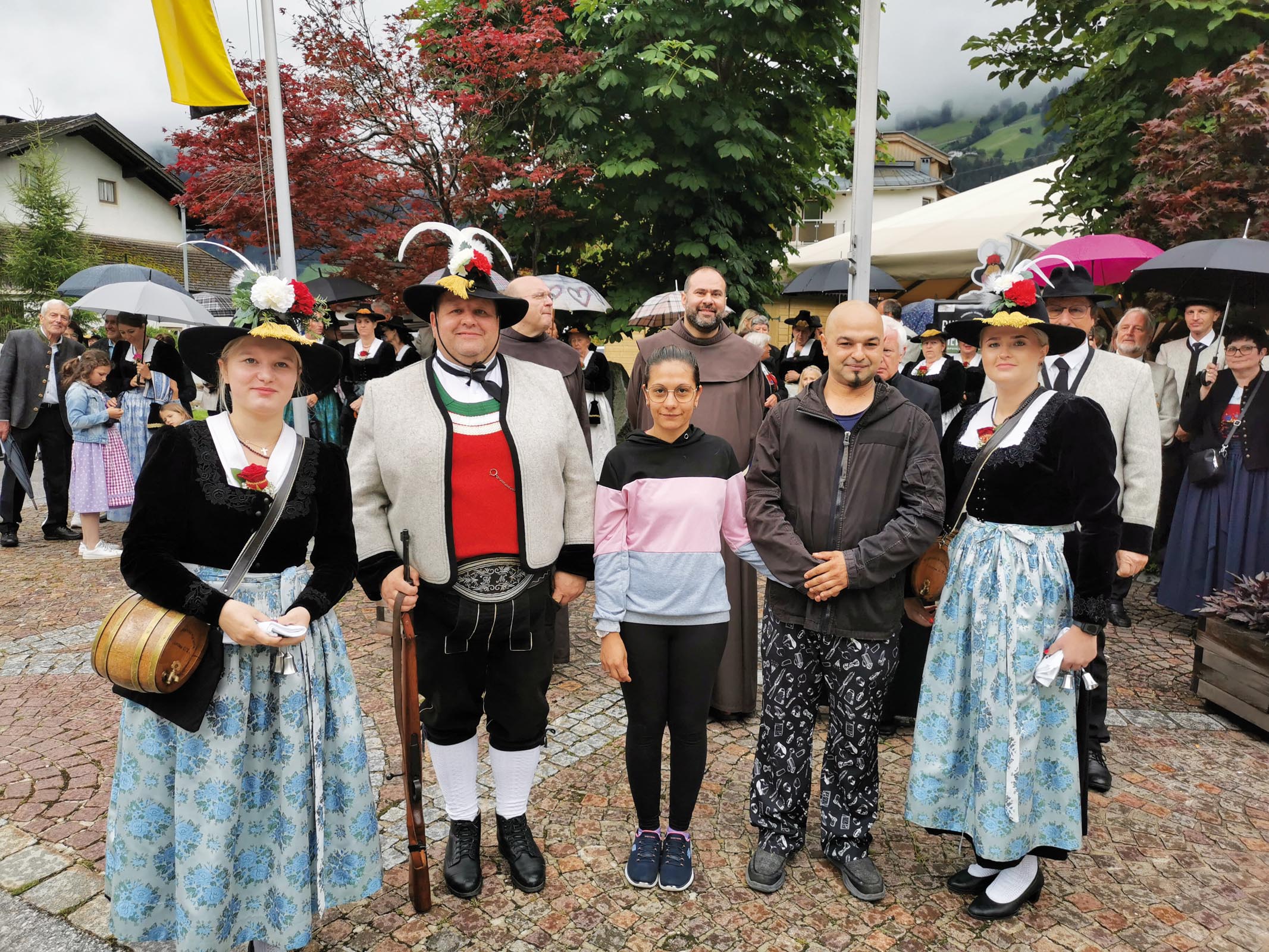 Aufgrund des Wetters konnte die Prozession nur verkürzt mit Evangelium beim Musikpavillon abgehalten werden. Dekan Ignaz Steinwender bedankte sich bei allen Mitfeiernden für ihre Teilnahme und nutzte die Gelegenheit, eine Vorschau auf die Heiligsprechung von Engelbert Kolland am 20. Oktober 2024 in Rom zu geben.