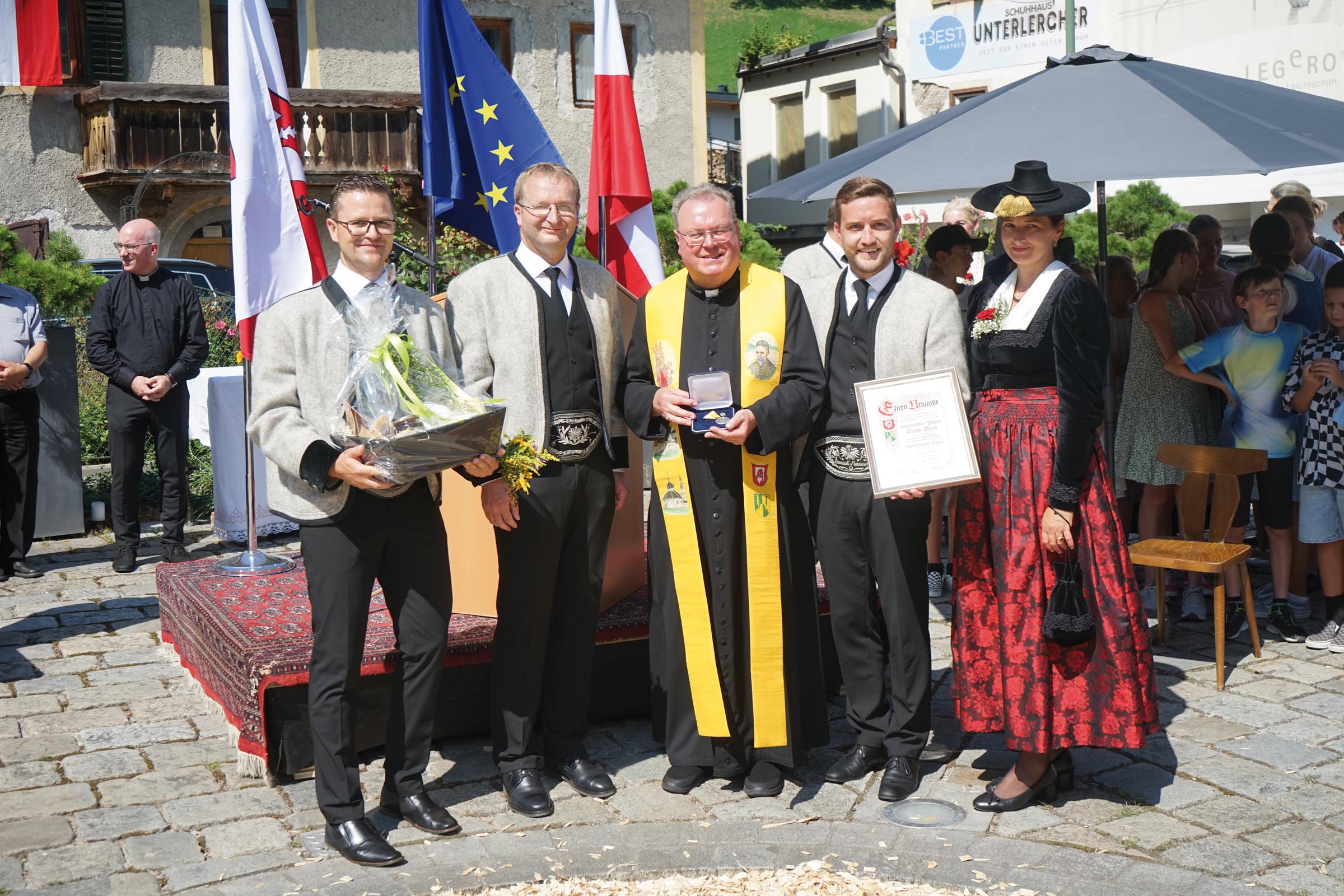 Zu Ehren des langjährigen Pfarrers Erwin Gerst, der Ende August in den wohlverdienten Ruhestand tritt, luden die Gemeinden Fügen und Fügenberg am 15. August 2024 zu einer gemeinsamen Abschiedsfeierlichkeit am Schlossplatz in Fügen ein.