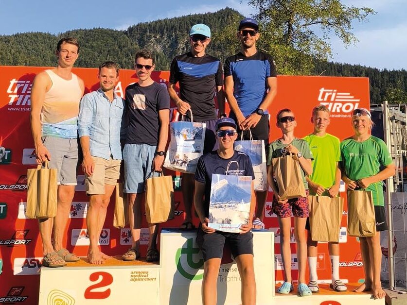 Drei junge Sportler des TRI & RUN Thiersee Junior Teams mit Tamino Huys, Manuel Prömer und Noah Thaler haben einen beachtenswerten Erfolg errungen: Mit gerade einmal 13 und 12 Jahren konnten sich Tamino im Wasser, mit schnellster Schwimmzeit bei den Männern, Manuel auf dem Rad und Noah im Laufen gegen wesentlich ältere Konkurrenten durchsetzen und erreichten den dritten Platz in der Herrenstaffel.