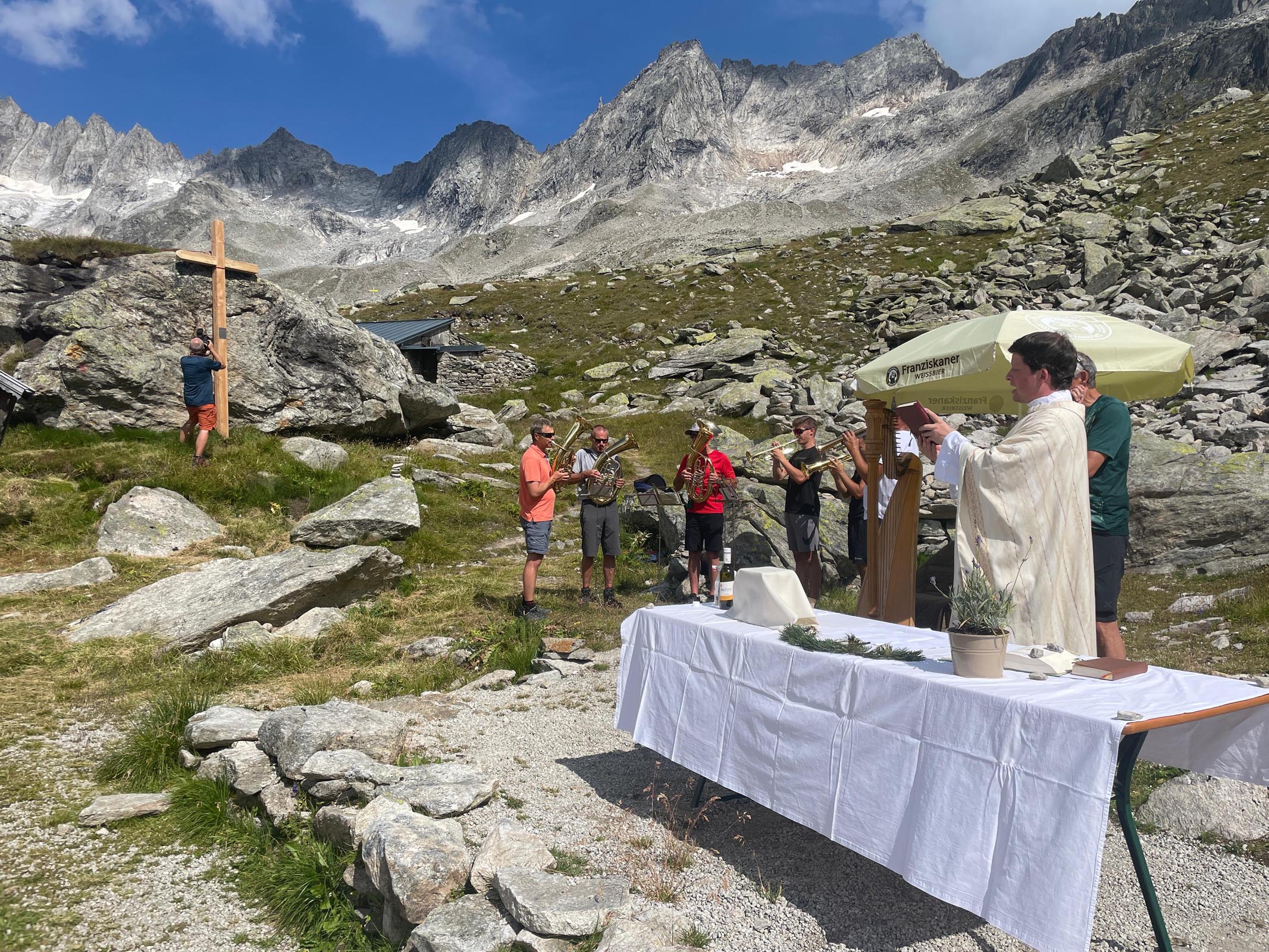 Unter den zahlreichen Gästen befanden sich auch Mitglieder des Alpenvereins Zillertal, angeführt von Obmann Paul Steger sowie den Ausschussmitgliedern Markus Kreidl und Josef Angebrand. Im Zuge des Jubiläums fand zudem eine besondere Einweihung statt: Ein neues Gipfelkreuz für das Reinbachköpfl, das von Mitgliedern der Sektion Plauen am selben Tag zum Gipfel gebracht und dort feierlich aufgestellt wurde.