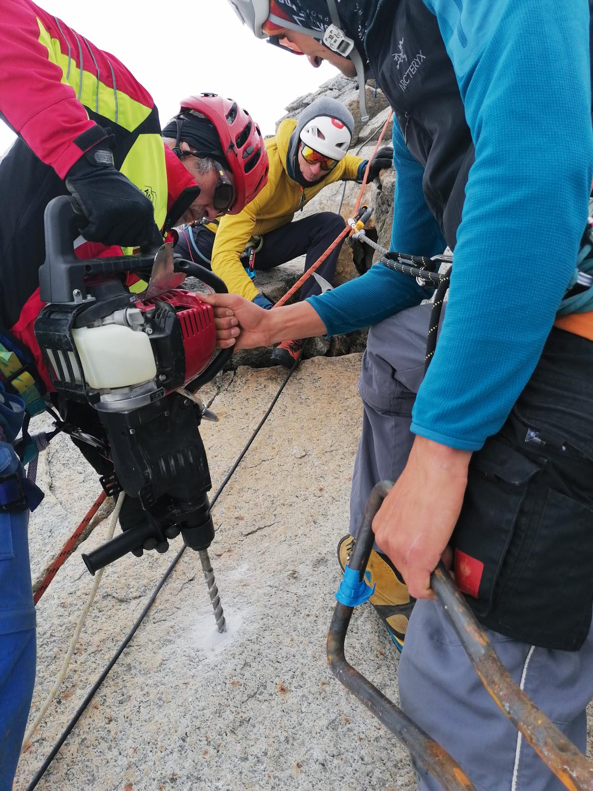 In der Woche vom 20. bis zum 24. August 2024 war es dann so weit, jegliche Sanierungsmaßnahmen wurden ausgeführt. Bergführer, Bergrettung, Alpinpolizei und ARGE Höhenwege Zillertal stellten ein Team von über 20 HelferInnen zusammen, die am Olperer, Fußstein und Schrammacher die alten Bügel durch neue ersetzten, passende Standplätze bohrten sowie die Abstiegswege markierten. Flexibilität, Teamwork und vollste Konzentration waren im alpinen Gelände auf über 3.000 Metern gefragt.