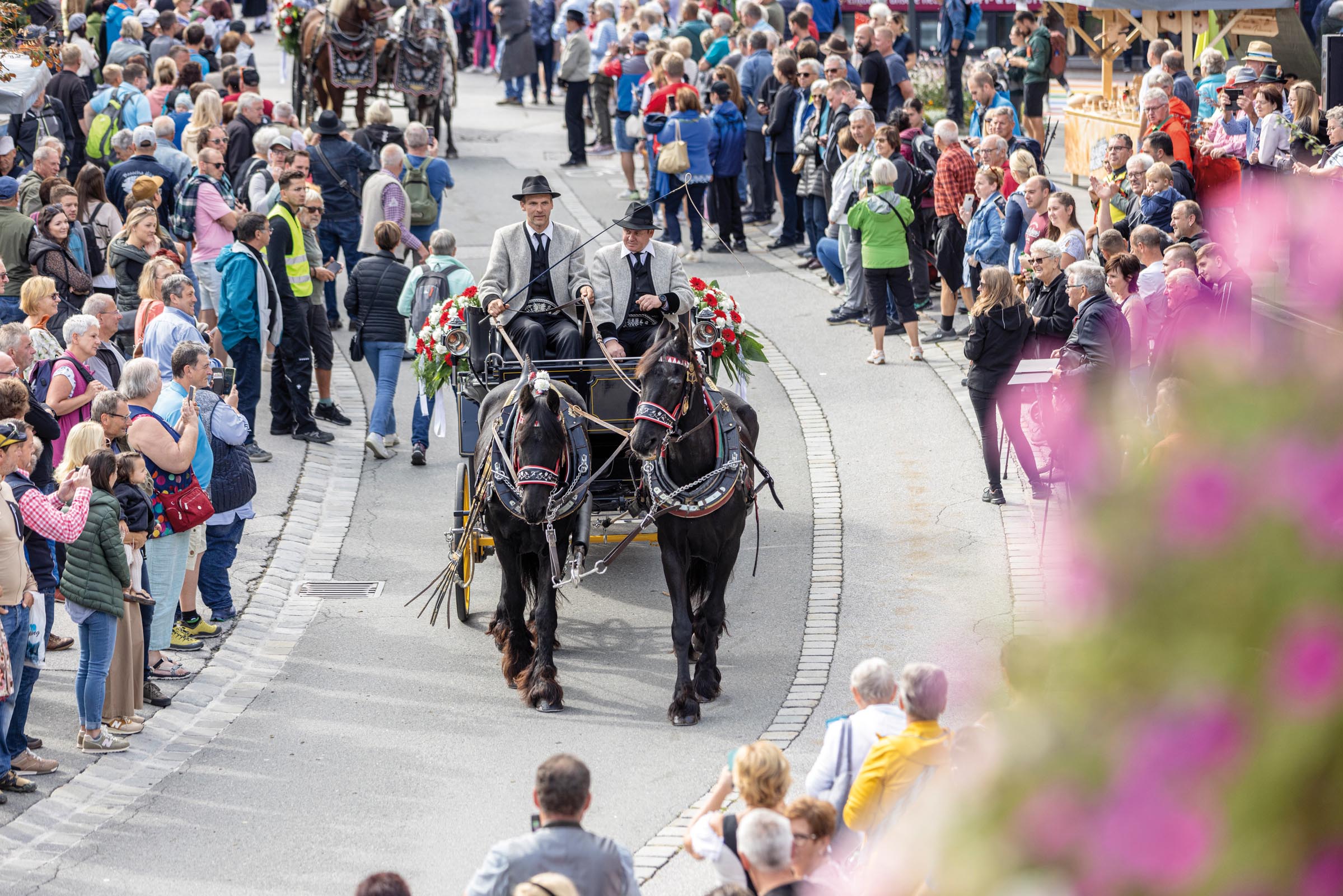 Der Brauchtumsumzug am 5. Oktober, ab 10.30 Uhr in Mayrhofen, ist das Highlight des „Zillertaler Bauern- & Musikherbst“ und spiegelt die kulturelle Vielfalt des Zillertals wider. Farbenprächtige Trachten, festlich geschmückte Wägen, Musik- und Tanzgruppen sowie kunstvoll gestaltete Pferdekutschen ziehen durch die Straßen.