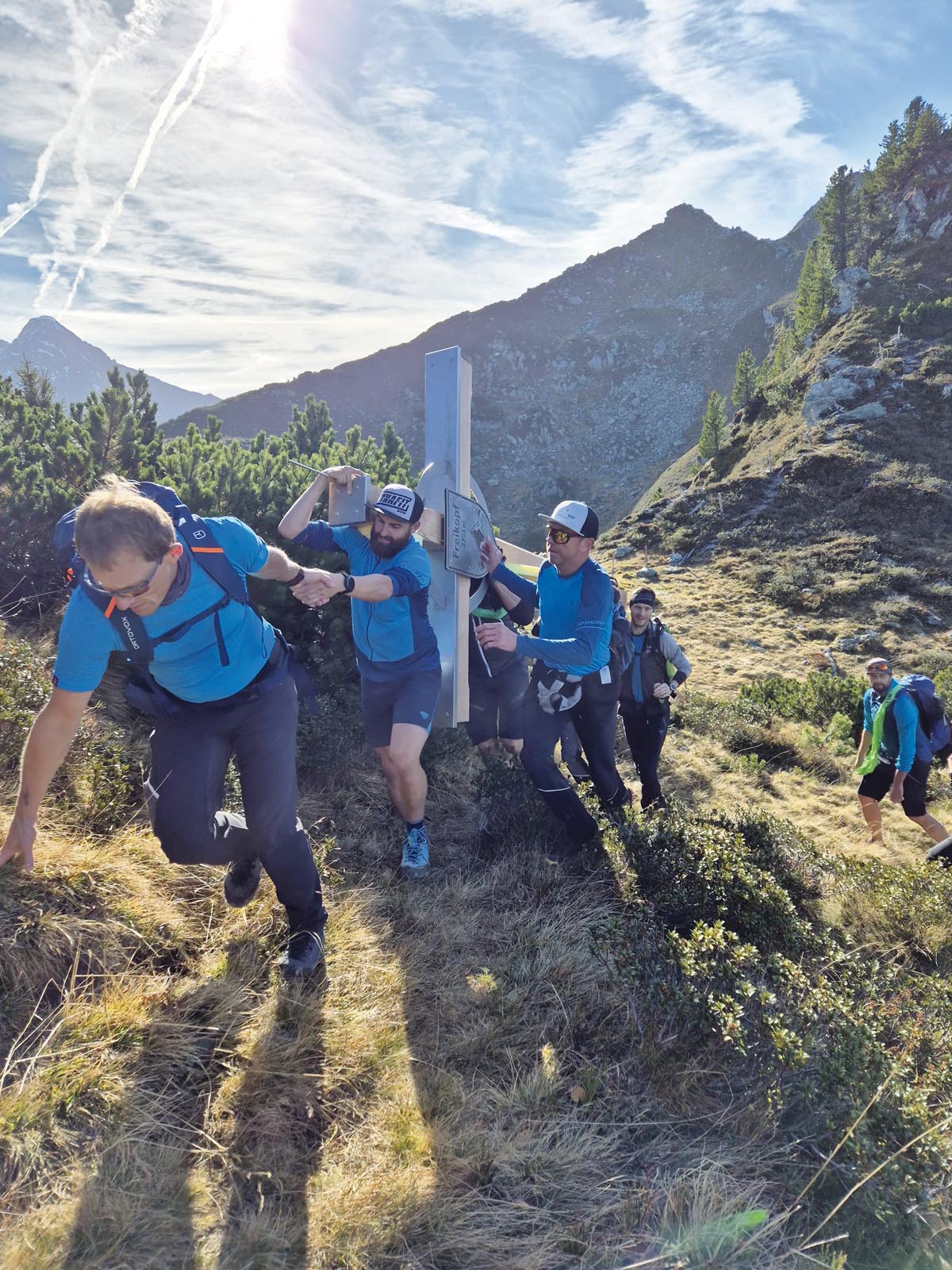 Am Sonntag, den 20. Oktober 2024 war es dann soweit. Etwa 70 Personen begleiteten das Kreuz auf seinem Weg von der Bergstation Gerlosstein in einem knapp 2-stündigen Marsch hinauf zum Gipfel. Schritt für Schritt, mit großer Hingabe und viel Stolz, wurde das schwere Kreuz von den „Heroes“ hinaufgetragen. „Manchmal sind es nicht nur die Gipfel, die uns rufen, sondern auch die Momente, die uns am Berg erwarten“, war von einem müden, aber überglücklichen Mitglied zu hören und später fügte er noch hinzu: „Heute war wieder einmal so ein bewegender Moment, ein Tag voller Emotionen und tiefer Gemeinschaft, als wir bei strahlendem Sonnenschein „unser“ Gipfelkreuz aufgestellt haben.“ Für die musikalische Umrahmung sorgte eine Bläsergruppe mit stimmungsvollen Melodien.