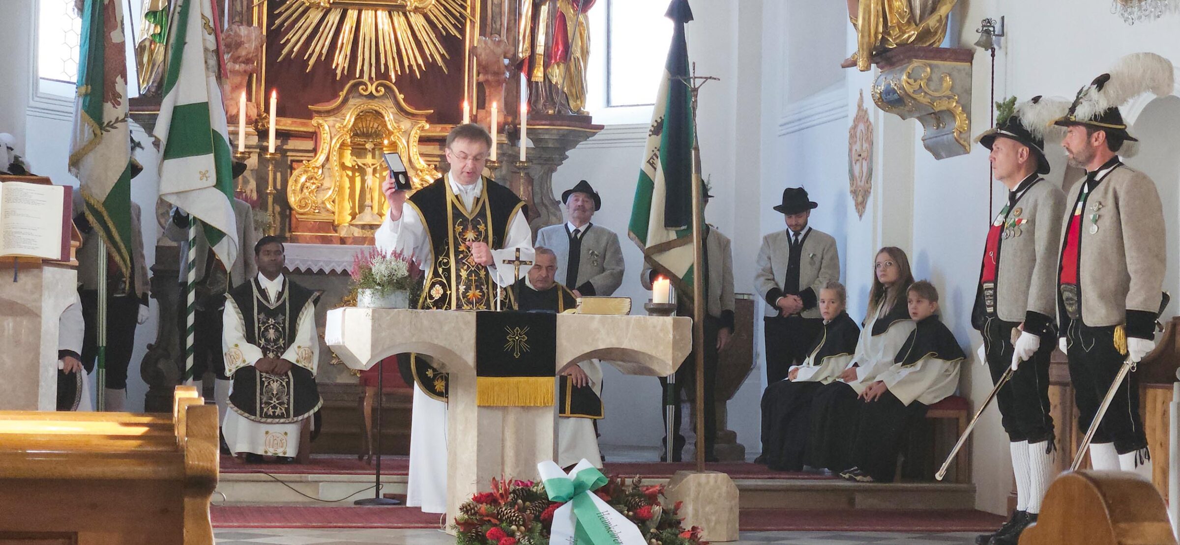 Den Festgottesdienst gestaltete die Bundesmusikkapelle und Diakon Toni hielt eine beeindruckende Predigt. Beim Gottesdienst erfolgte eine große Überraschung. Pfarrer Proßegger überreichte dem Schützenhauptmann Manfred Fiechtl und dem Obmann OL Gerhard Hauser den Verdienstorden der Heiligen Rupert und Virgil in Silber, dies ist eine Auszeichnung des Erzbischofs von Salzburg für Verdienste im Bereich einer Pfarre.