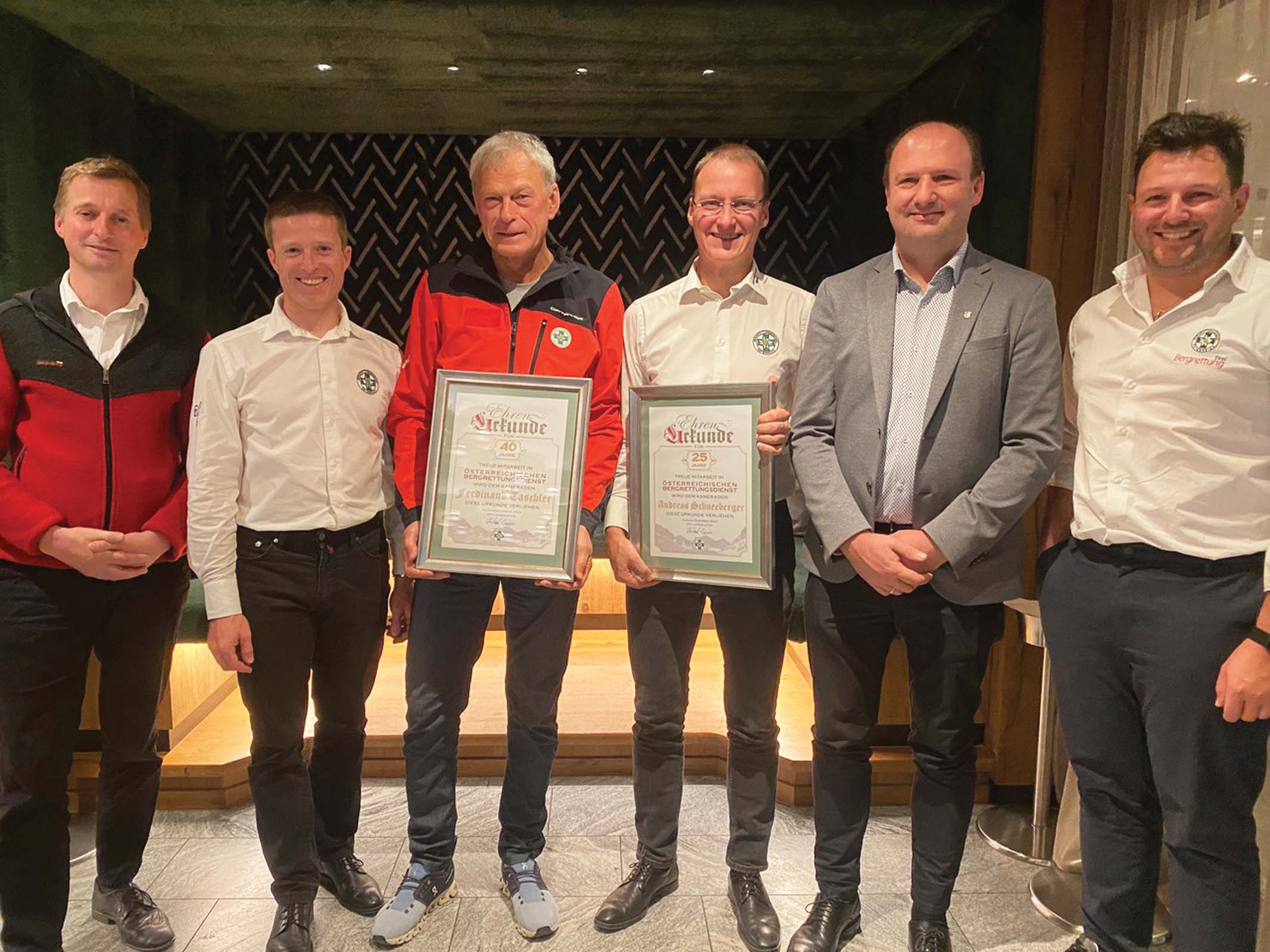 Selbstverständlich dürfen im Laufe des Jahres auch diverse Festivitäten und Feierlichkeiten nicht fehlen. Eine besondere Ehrung konnte Herr Joschi Nothegger krankheitsbedingt leider nicht persönlich entgegennehmen. 50 Jahre ist er mittlerweile treues Mitglied im Österreichischen Bergrettungsdienst der Ortsstelle Mayrhofen. Die Ehrenurkunde für seinen unermüdlichen Einsatz wir ihm Ortsstellenleiter Andreas Eder zu einem späteren Zeitpunkt überreichen. Die Ehrenurkunde für 40 Jahre Mitgliedschaft konnte an diesem Abend Ferdinand Taschler und die Ehrenurkunde für 25 Jahre konnte Andreas Schneeberger entgegen nehmen. Ein herzlicher Dank an dieser Stelle den Jubilaren für ihren uneigennützigen und vorbildliche jahrelange Mitarbeit.