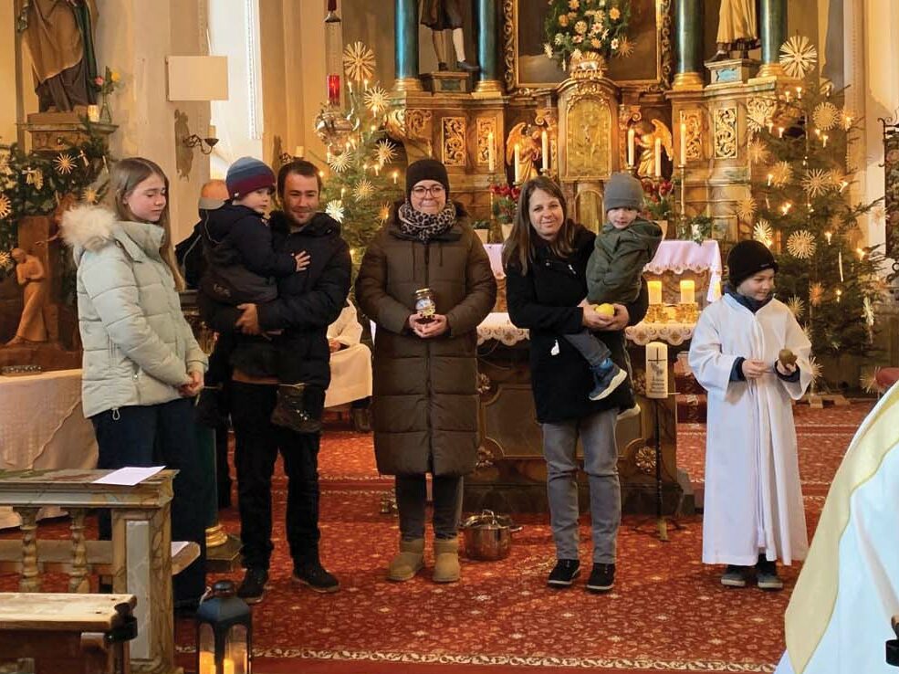 Pfarrer Piotr begrüßte die Teilnehmer herzlich und bezog die Familien aktiv in die Liturgie ein: Eine Familie aus Aschau las die Kyrierufe, eine aus Finkenberg die Lesung, und die Jungschar Hippach trug die Fürbitten vor.