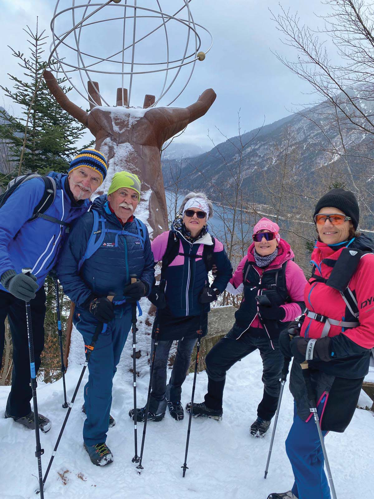 Die letzte Sportwanderung im alten Jahr starteten 20 Wanderer ab Lanersbach bis Hintertux. Herzlich empfangen wurden wir wieder einmal bei „Frieda“ im „Klausnerhof“. Am 8. Jänner 2025 ab Talstation der Rastkogelbahn in Vorderlanersbach – Gemais – Rosenkranzkapelle – eine sehr schöne, mit 743 Höhenmetern schon anstrengende Winterwanderung auf perfekt präpariertem Weg hinauf zur Eggalm, wurde wieder zu einem besonderen Erlebnis. Zurück mit der Eggalmbahn nach Lanersbach, erreichten wir den Bus  nach Mayrhofen. Mit Zug und Bus zum Start in Pertisau am 15. Jänner mit dem Ziel „Alpengasthaus Karwendel“, sehr gut zu erreichen über die Rodelbahn in ca. 2 ½ Stunden, entschieden sich 16 Teilnehmer und genossen herrliche Ausblicke auf den Achensee. Ganz bequem ging‘s mit der Karwendelbahn ins Tal zurück und mit dem Bus nach Mayrhofen. Am 22. Jänner 2025 stand  Gerlos mit dem Schönachtal, vereinbart mit einem Zusammentreffen mit den Genusswanderern in der „Jörgleralm“, auf dem Programm.  Der wunderschöne Talschluss mit der Issalm bei Sonnenschein und Winterfeeling, wie schön!? Etwas Neuschnee, 3 Schneeschuh- und 15 weitere Sportbegeisterte folgten  Resi und Toni aus Ginzling über den „Digglberg“ hinauf nach „Innerböden“. Im unberührten Schnee und Sonne dazu, einfach wunderschön! Im Gasthof „Zemmtal“ verwöhnte uns Romana nach der Rückkehr mit ihrem Spezial-Kotelett. Nur mit Schneeschuhen, das wollten wir gemeinsam am Gerlosstein ausprobieren und ist allen 15 Teilnehmern sehr gut gelungen. Auch im steilen Gelände hatte jeder Spaß und Freude. Die Einkehr im „Sonnenstüberl Arbiskogel“ war eine nette Nach-Geburtstagsfeier für mich.