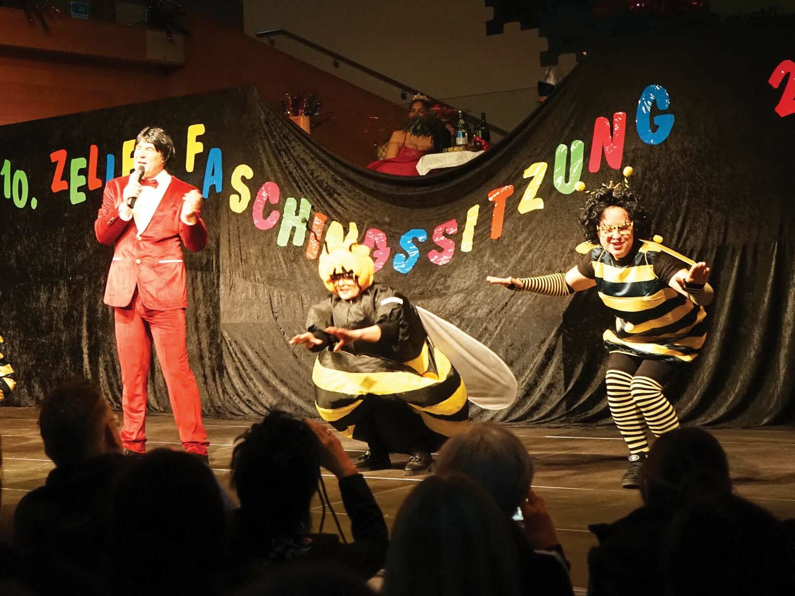 Am Freitag, den 14., und Samstag, den 15. Februar, begeisterte die 10. Zeller Faschingssitzung das Publikum in der bis auf den letzten Platz gefüllten Aula der Mittelschule. Mit einem abwechslungsreichen Programm, humorvollen Sketchen, beeindruckenden Showeinlagen und stimmungsvoller Musik bot die Veranstaltung beste Unterhaltung und sorgte für zahlreiche Lacher.