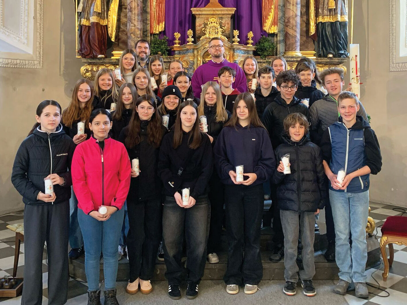Die Firmlinge beteiligten sich auch beim Gottesdienst durch das Lesen der Kyrie-Rufe und der Fürbitten und sie wurden von Pfarrer Piotr bei der Predigt aktiv eingebunden.