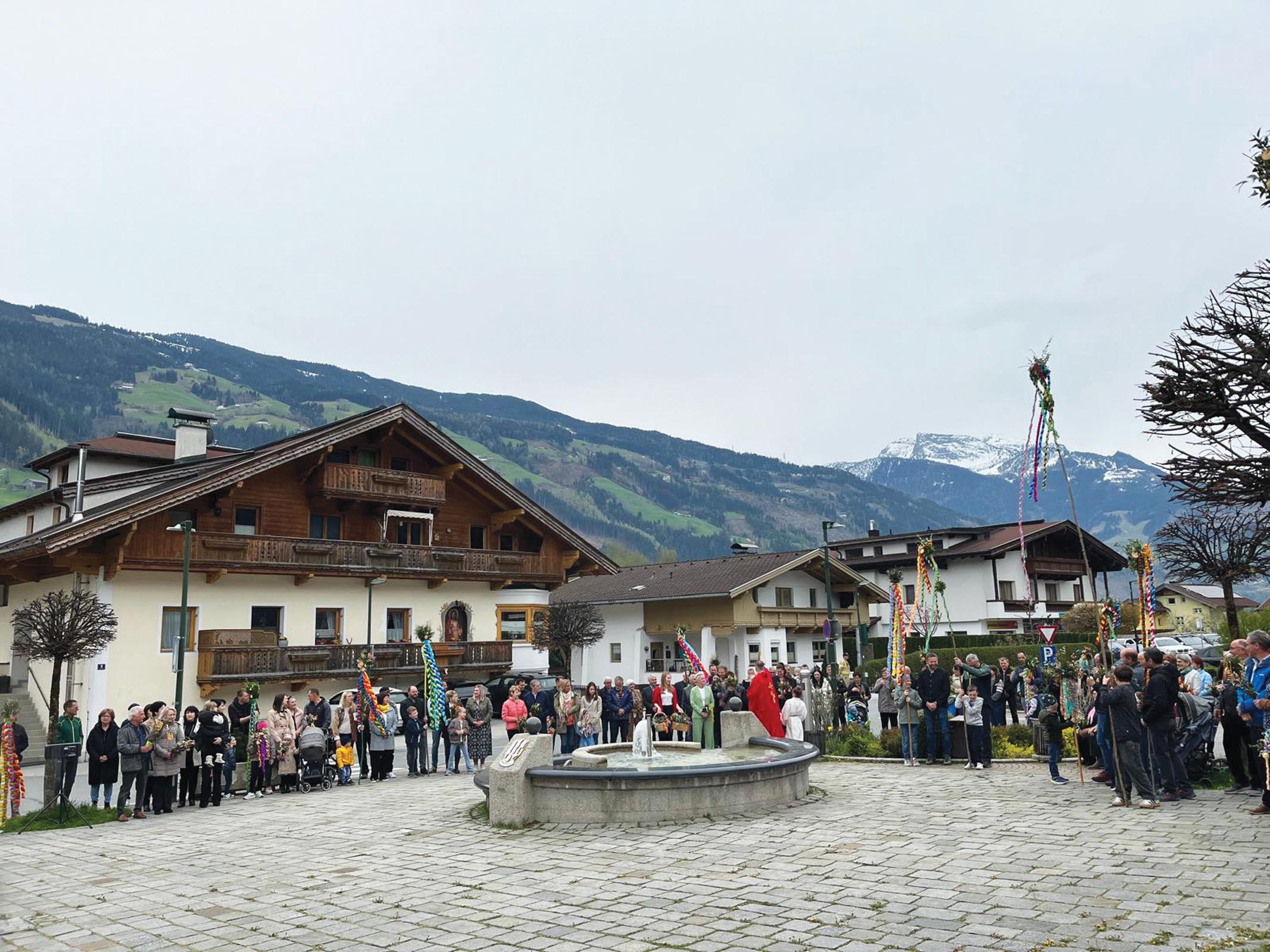Die Palmprozessionen, wie sie in Hippach vom Sponringplatz, in Aschau vom Dorfplatz und in Finkenberg vom Pavillon in die Pfarrkirche abgehalten wurden, erinnern daran, was vor über 2.000 Jahren geschehen ist. Mit bunten Palmbuschen und kunstvoll geschmückten Palmstangen versammeln sich Menschen, um Jesus auf eine ganz eigene, lebendige Weise willkommen zu heißen.