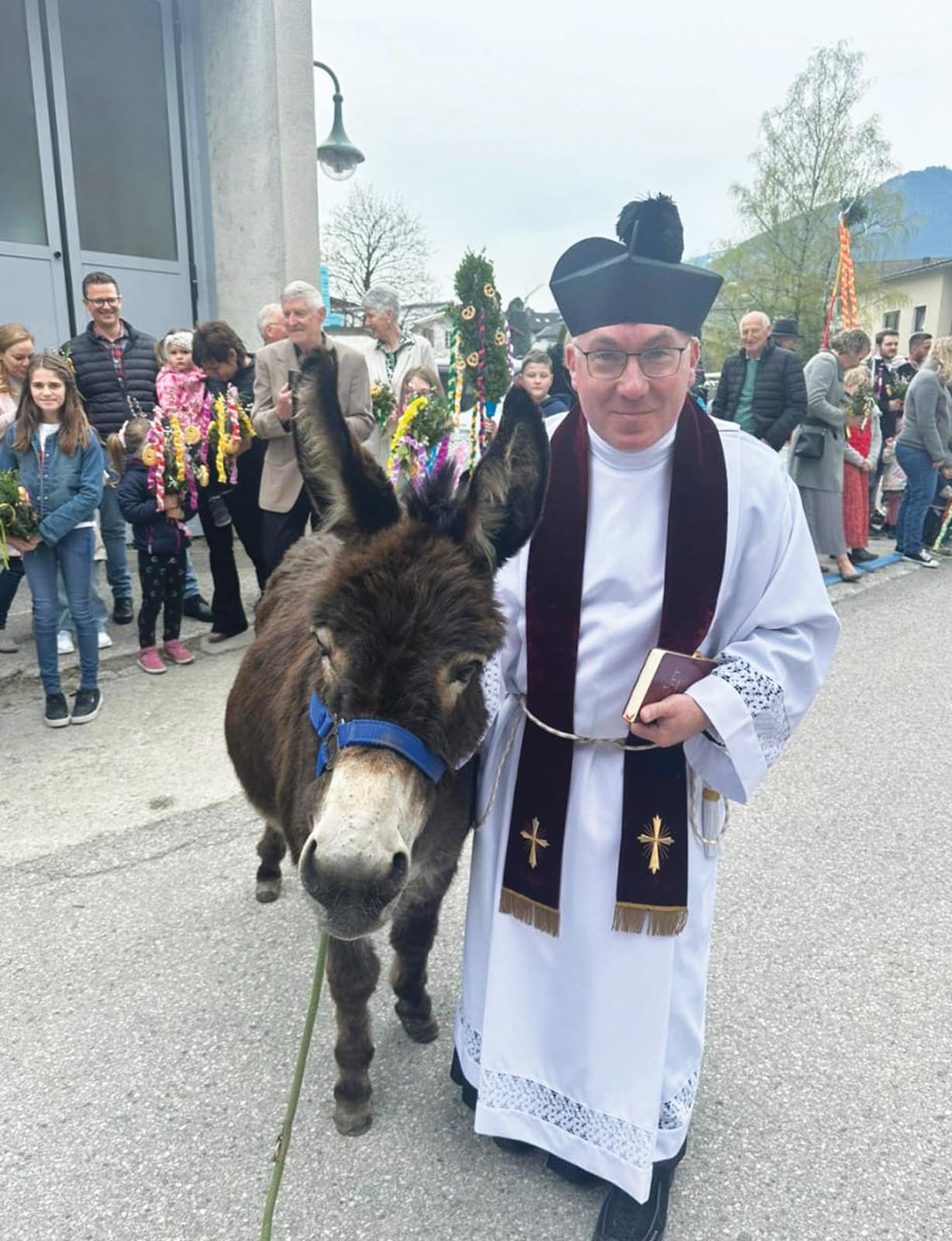Die Eselin Pauline, der Familie Kerschdorfer aus Stumm, hat am Palmsonntag mit unserem Pfarrer Tobias die Palmprozession in Fügen angeführt!