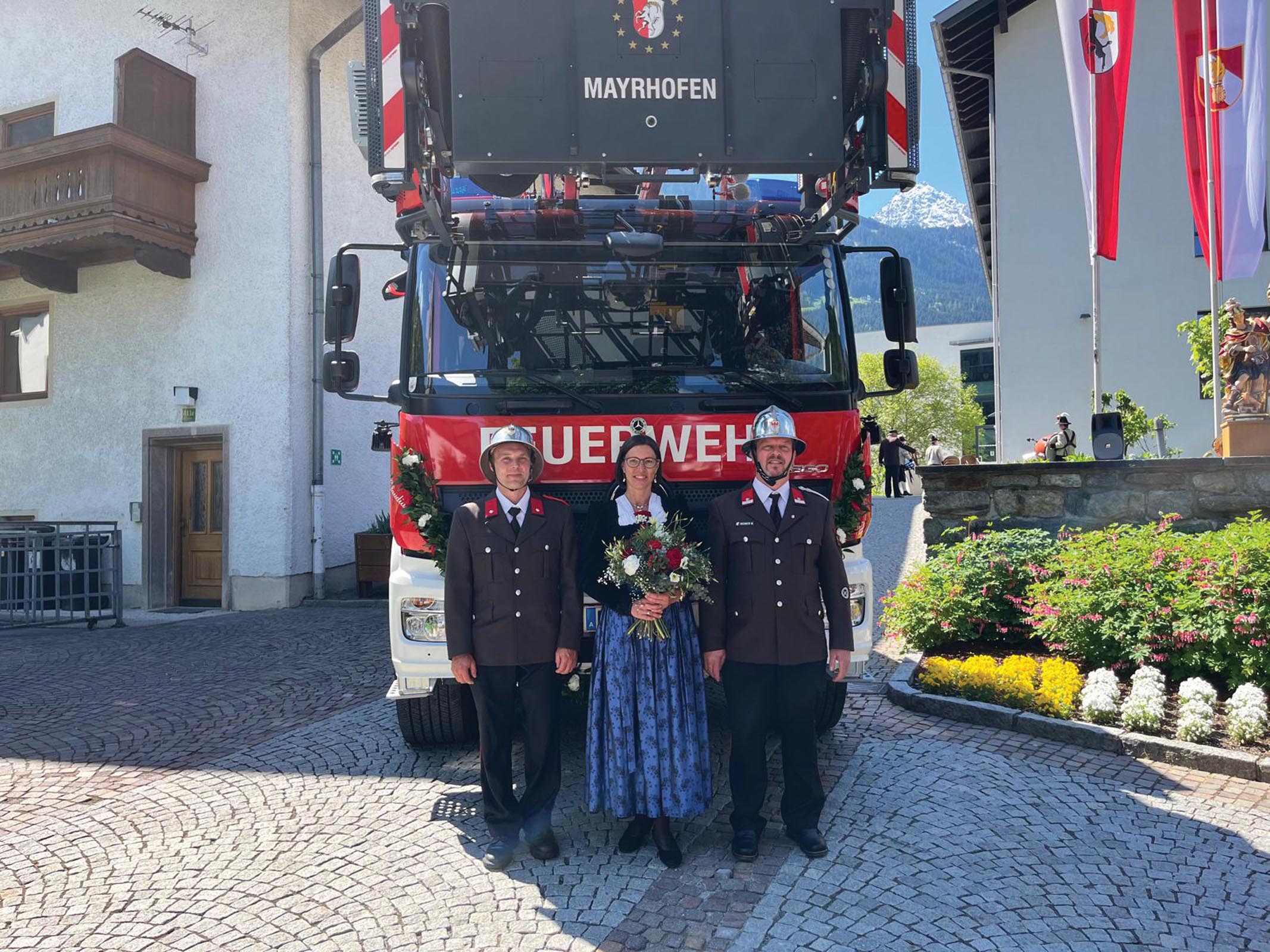 Im Beisein zahlreicher Ehrengäste – darunter Sicherheitslandesrätin Astrid Mair, Bürgermeister Hans Jörg Moigg, Bezirks-Feuerwehrkommandant Hansjörg Eberharter, Vertreter von Polizei und Wasserrettung sowie die Bürgermeister der Nachbargemeinden – wurde die neue Drehleiter offiziell eingeweiht. Auch die Partnerfeuerwehr Feldmoching war anwesend.