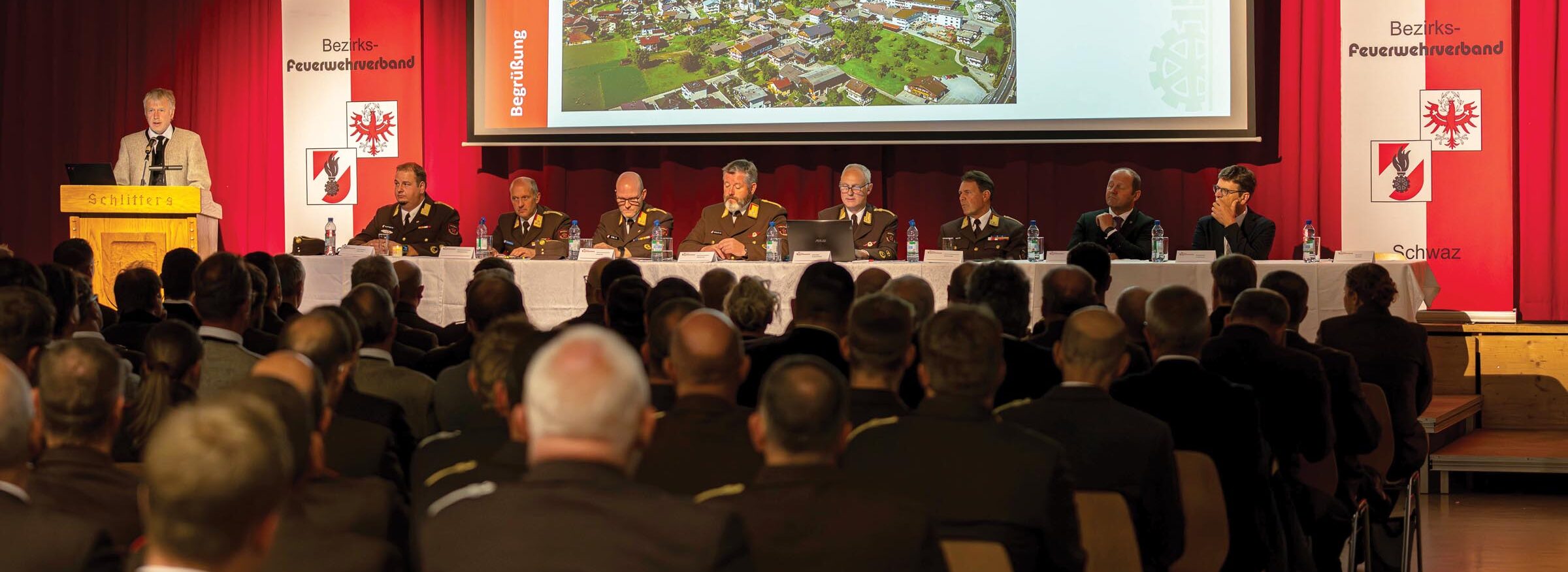 Eine beeindruckende Leistungsbilanz über das Einsatzjahr 2024 zog Bezirks-Feuerwehrkommandant Hansjörg Eberharter am Freitag, den 9. Mai, beim 137. Bezirks-Feuerwehrtag im Veranstaltungssaal in Schlitters im Beisein zahlreicher Ehrengäste, Vertreter aus den Tiroler Bezirks-Feuerwehrverbänden und anderer Blaulichtorganisationen. 156 Vertreterinnen und Vertreter von den 44 Feuerwehren im Bezirk waren ebenfalls anwesend.