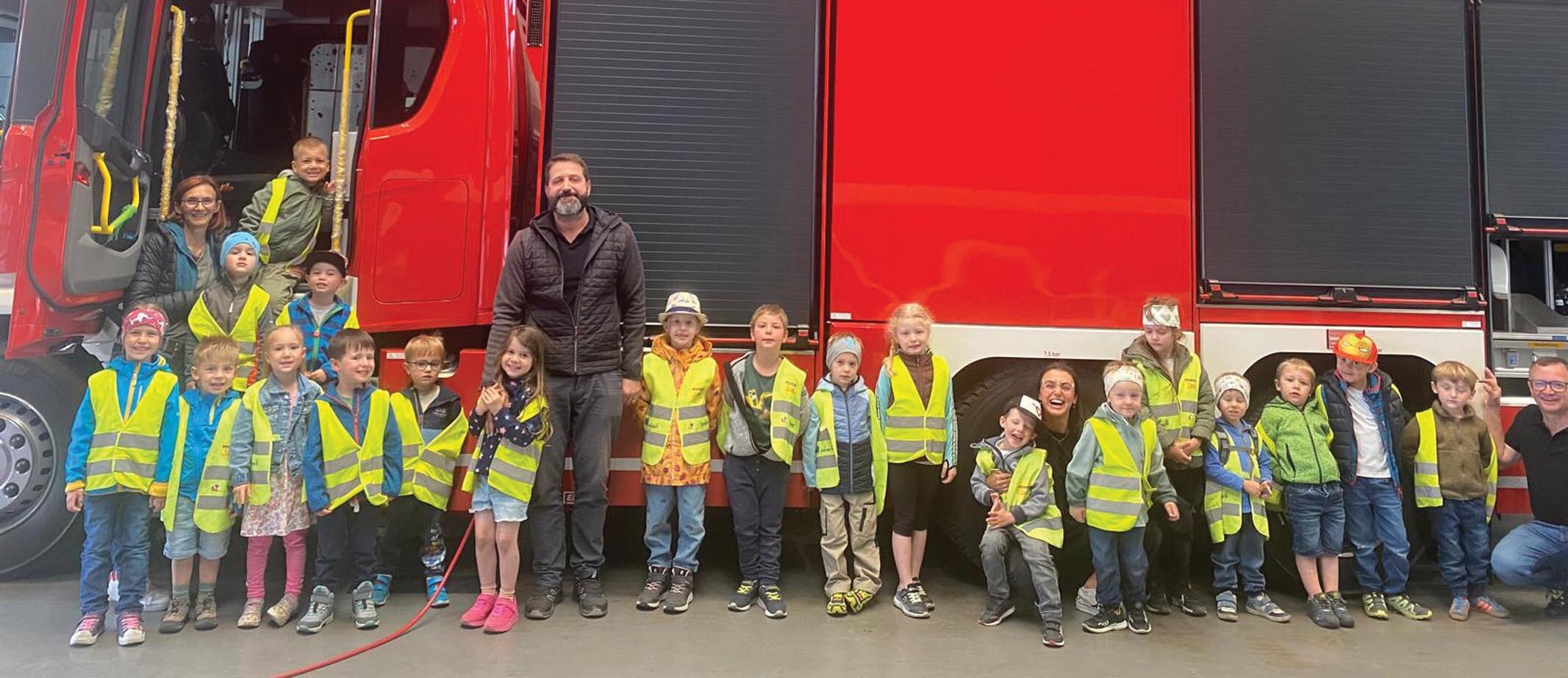 Zu Beginn bekamen die Kinder einen Film über das Unternehmen gezeigt, bevor es zur spannenden Betriebsbesichtigung ging. Besonders begeistert waren die jungen BesucherInnen von den großen Feuerwehrfahrzeugen, die sie aus nächster Nähe bestaunen durften. Zwischendurch gab es zur Stärkung eine liebevoll vorbereitete Jause.