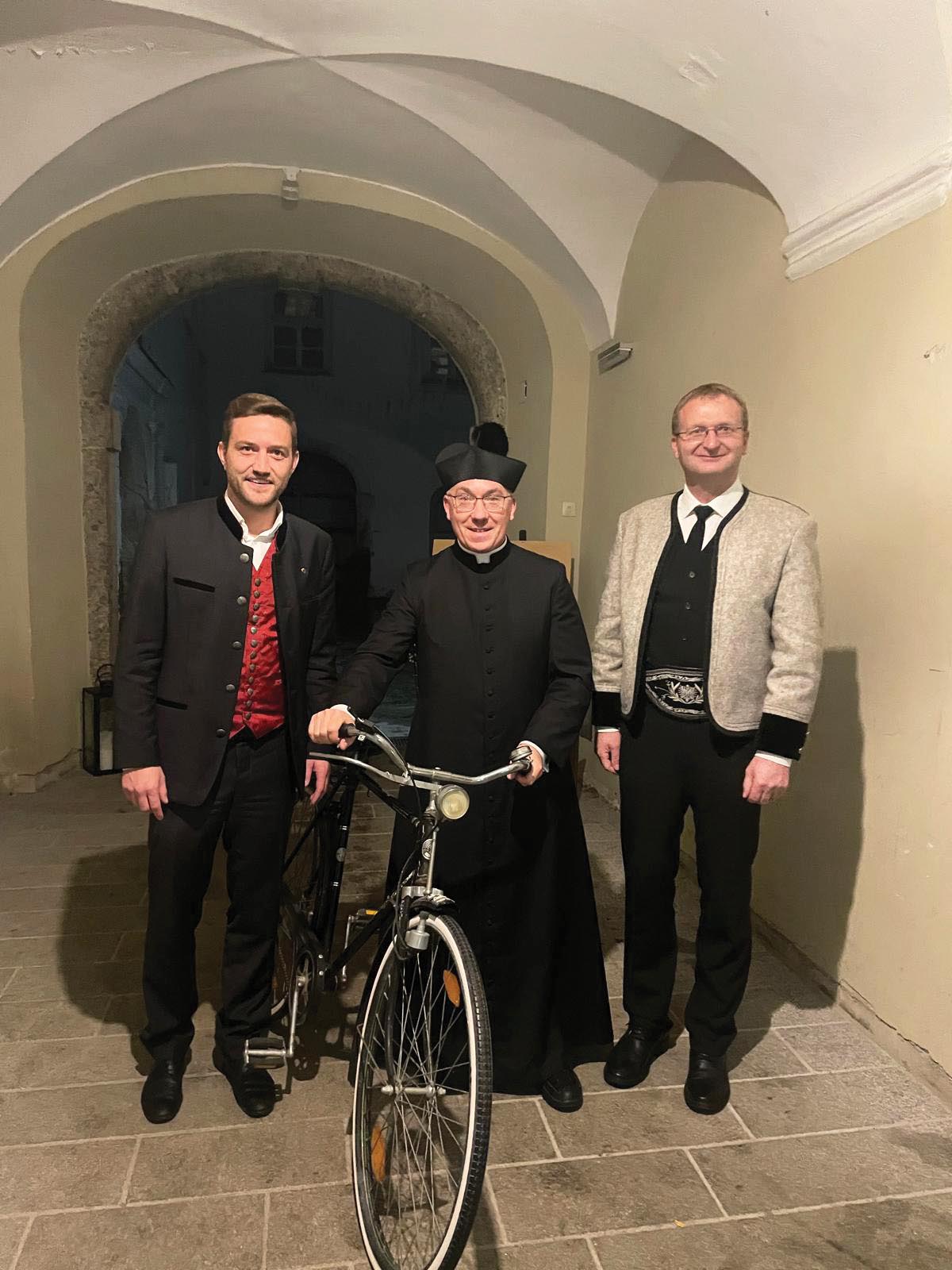 Passend zum Filmklassiker, der später gezeigt wurde, war Pfarrer Tobias Höck an diesem Abend mit einem Waffenrad unterwegs – eine charmante Erinnerung an die ländliche Szenerie von Don Camillo und Peppone.