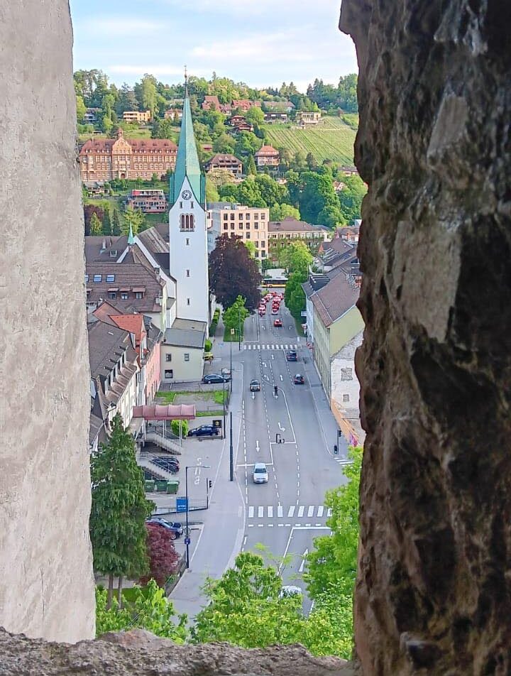 Da wir möglichst zügig Bludenz als unsere Mittagsrast erreichen wollten, gab es keine Frühstückspause. Stattdessen machten wir Halt auf einem schönen und ruhigen Rastplatz. Mitreisende „Metzger Moidi“ hatte uns 44 Wurstsemmeln mitgebracht, Schofför Christian versorgte uns mit Getränken. Gestärkt und zufrieden ging die Fahrt weiter bis Bludenz, die Alpenstadt mit südlichem Flair. Im Gasthof „Löwen“ wurden wir bereits erwartet. Ein Spaziergang und ein kleiner Einkaufsbummel in der Altstadt mit Blick zur „Laurentiuskirche“, auf einem Plateau thronend, füllte die Mittagspause.