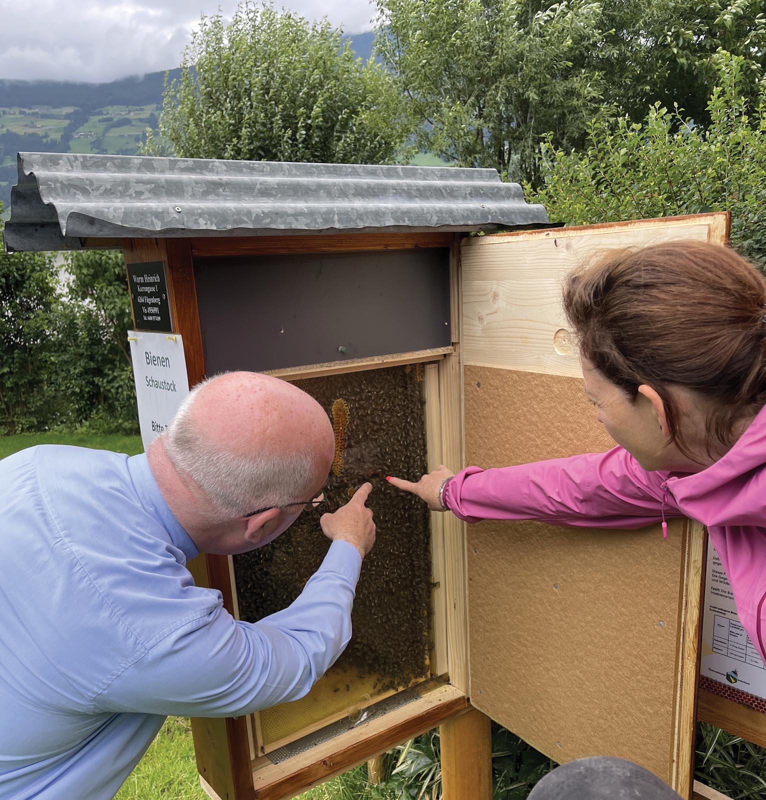 Der Caritas-Kindergarten Uderns besuchte kürzlich den Schaubienenstock im Widumsgarten Fügen.