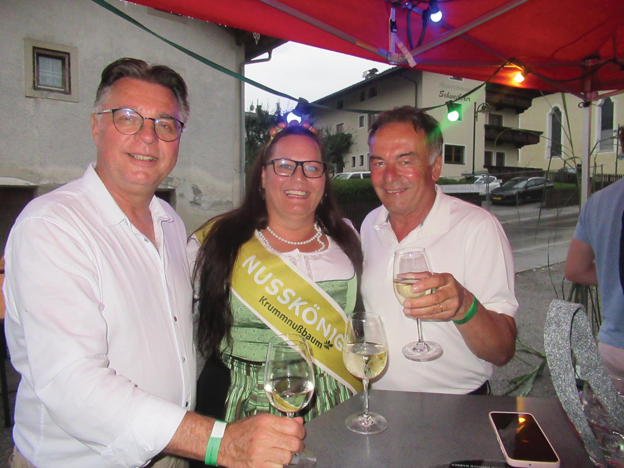 Der am Abend einsetzende Regen konnte der Stimmung des Festes nichts anhaben, da der Pavillon zur Gänze mit einem Zelt überdacht ist. Für musikalische Unterhaltung sorgten die „Ausholter“.