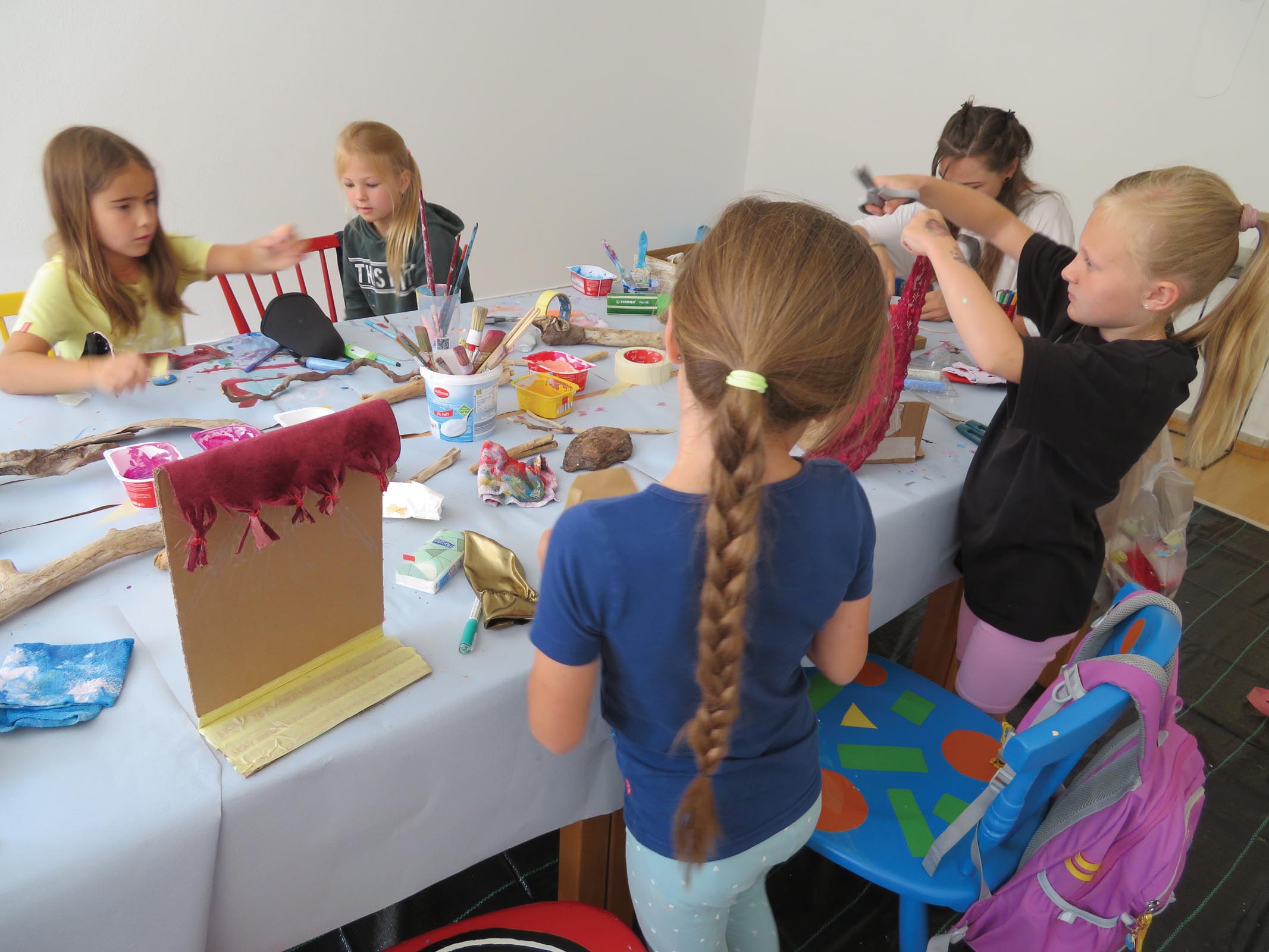 Magisch wurde es im Workshop „Glücksstein und Zauberstab“: Hier gestalteten die Kinder persönliche Glücksbringer aus Stein und bastelten funkelnde Zauberstäbe.