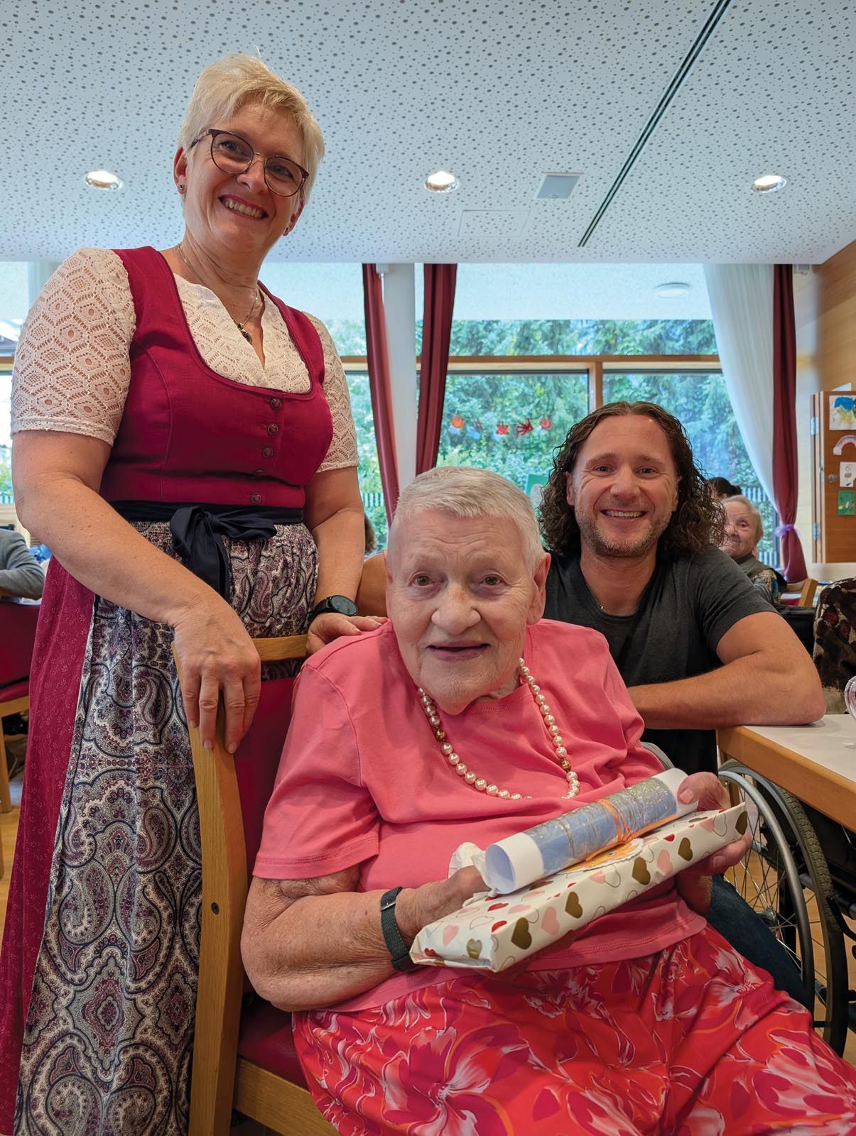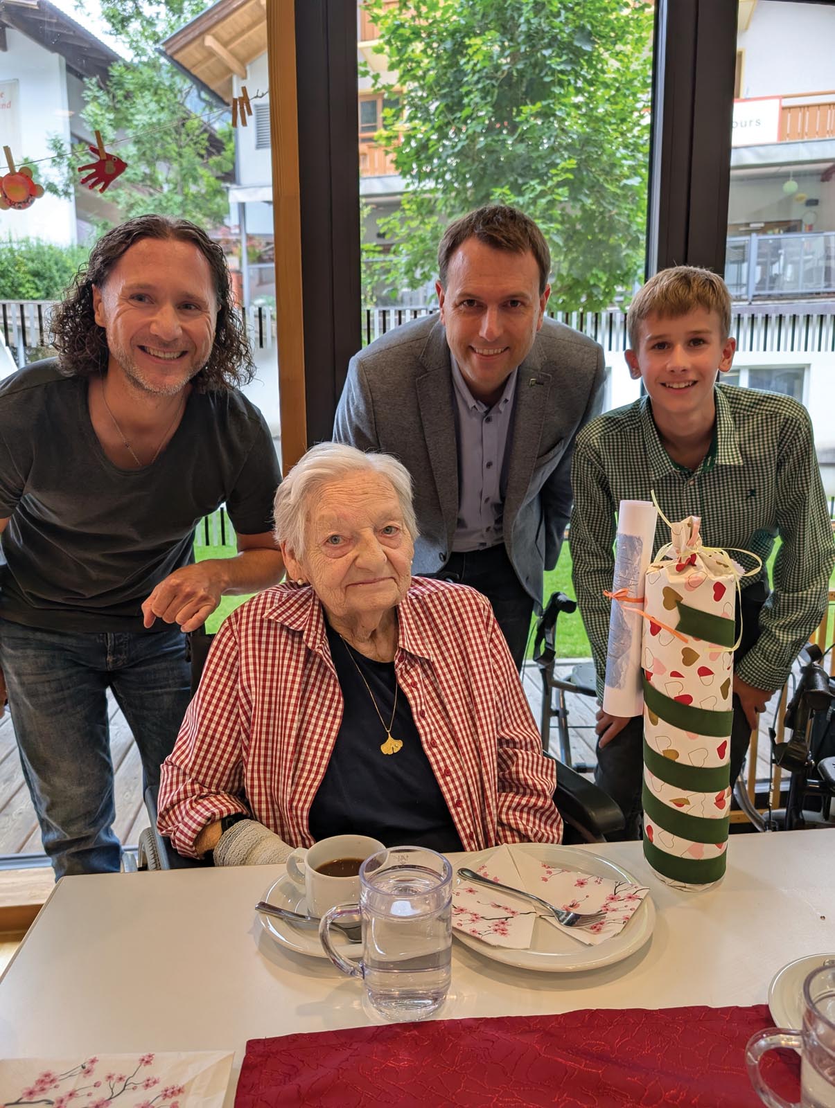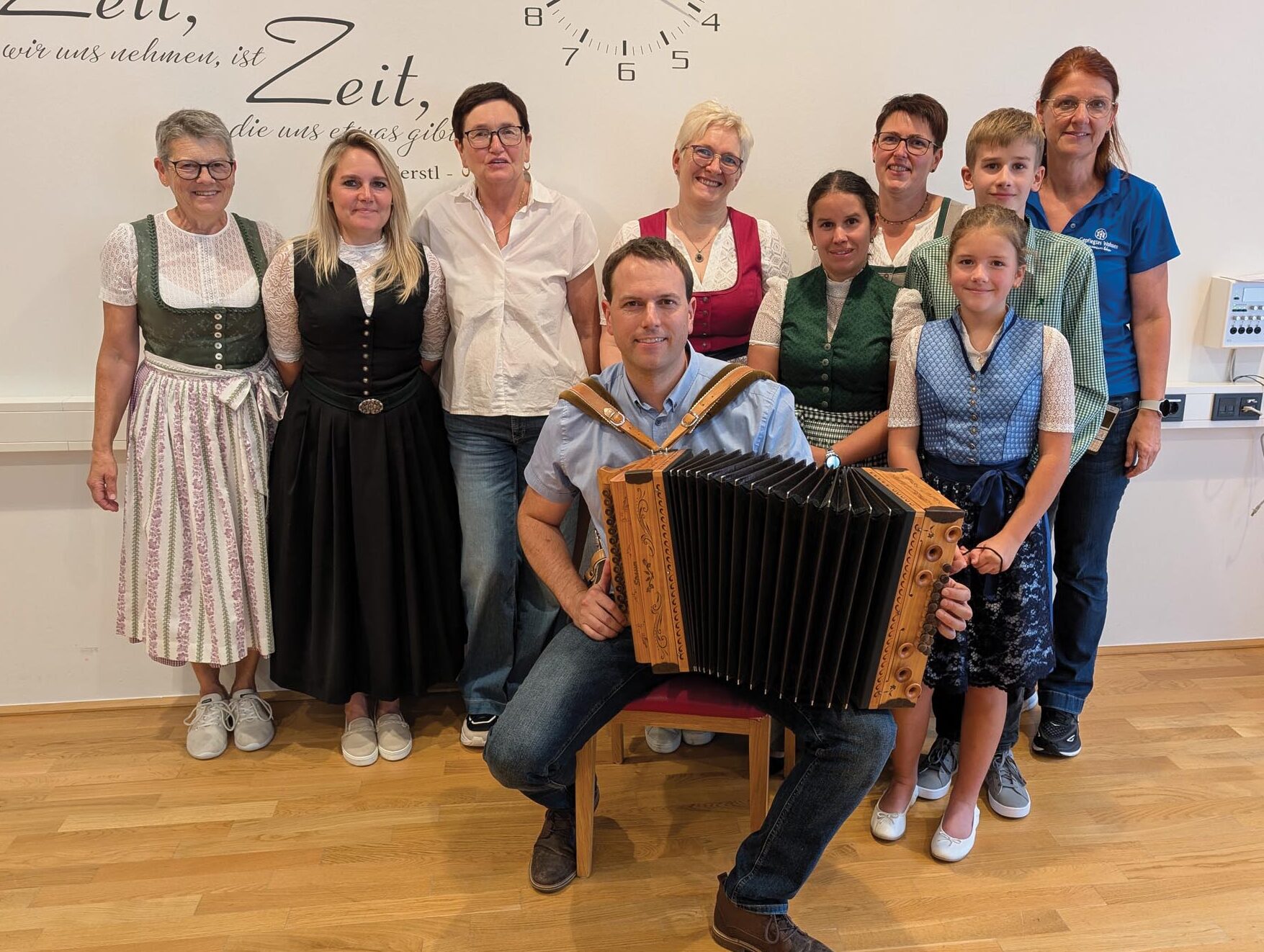 Ein besonders schöner Moment war auch heuer wieder der Besuch vom Tuxer Bürgermeister Simon Grubauer. Mit seinen persönlichen Glückwünschen und wertschätzenden Worten an die Geburtstagskinder und das gesamte Haus sorgte er für viel Freude und ein spürbares Gefühl der Verbundenheit. Und ganz nebenbei ließ er es sich nicht nehmen, auch ein paar flotte Stücke auf seinem „Ziacha“ zum Besten zu geben – sehr zur Freude aller Anwesenden!
