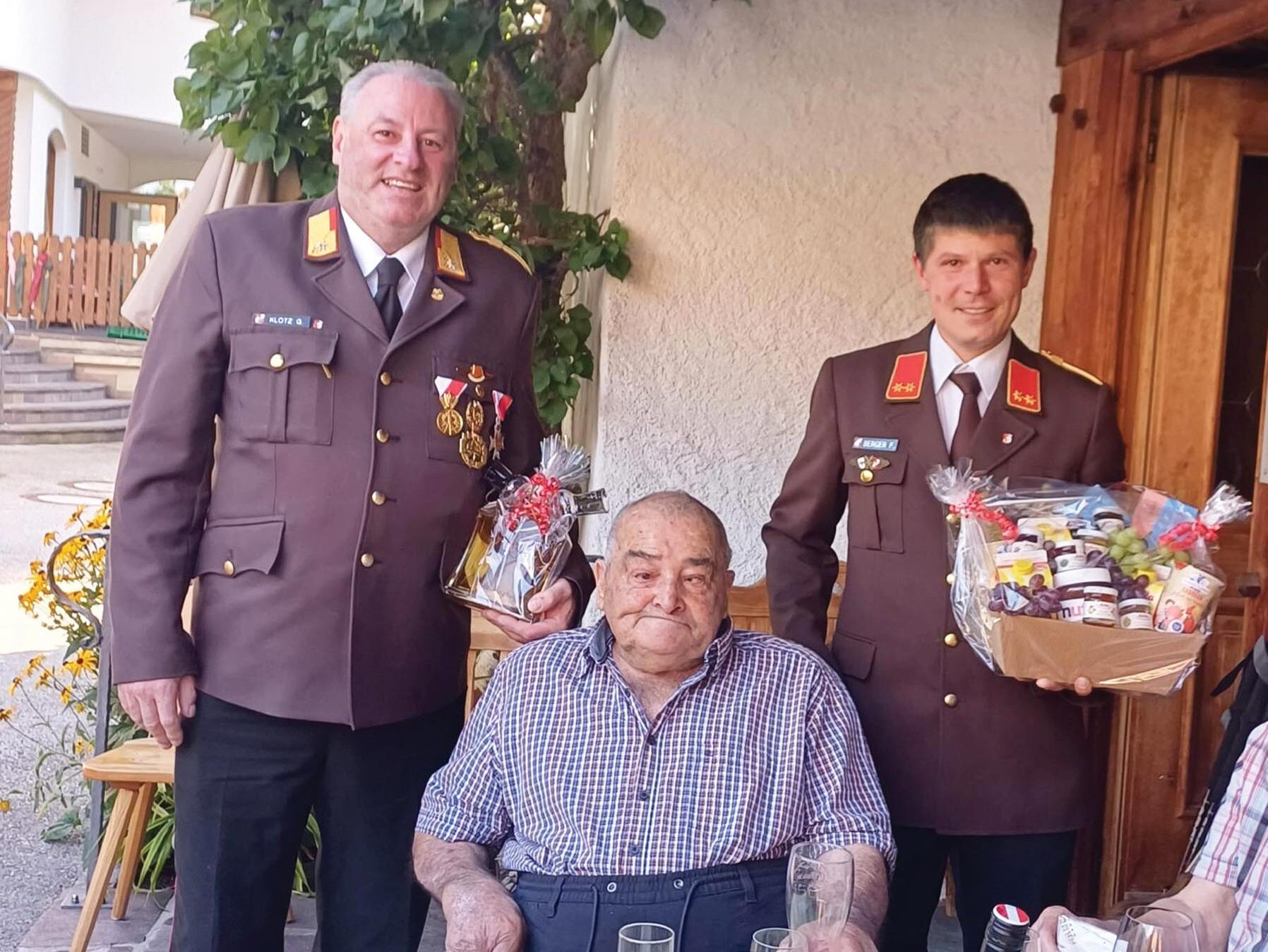 Zum einen überbrachte die Schützenkompanie Mayrhofen im Namen der gesamten Kompanie ihrem Altmitglied die besten Glückwünsche und zum anderen gratulierte auch die Freiwillige Feuerwehr Mayrhofen ihrem ältesten Mitglied ganz herzlich.