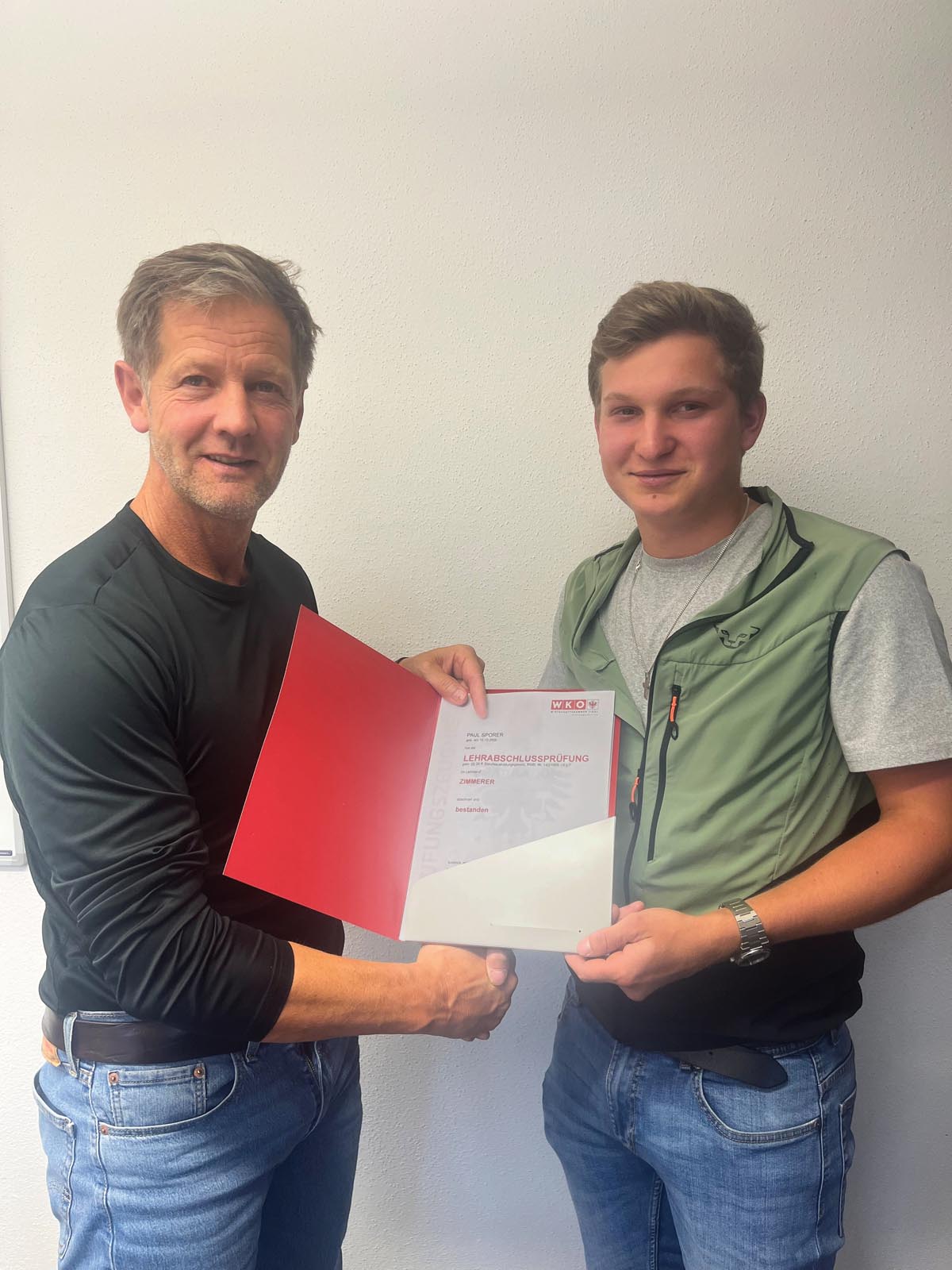 Paul Sporer, Zimmerer – erfolgreich bestanden