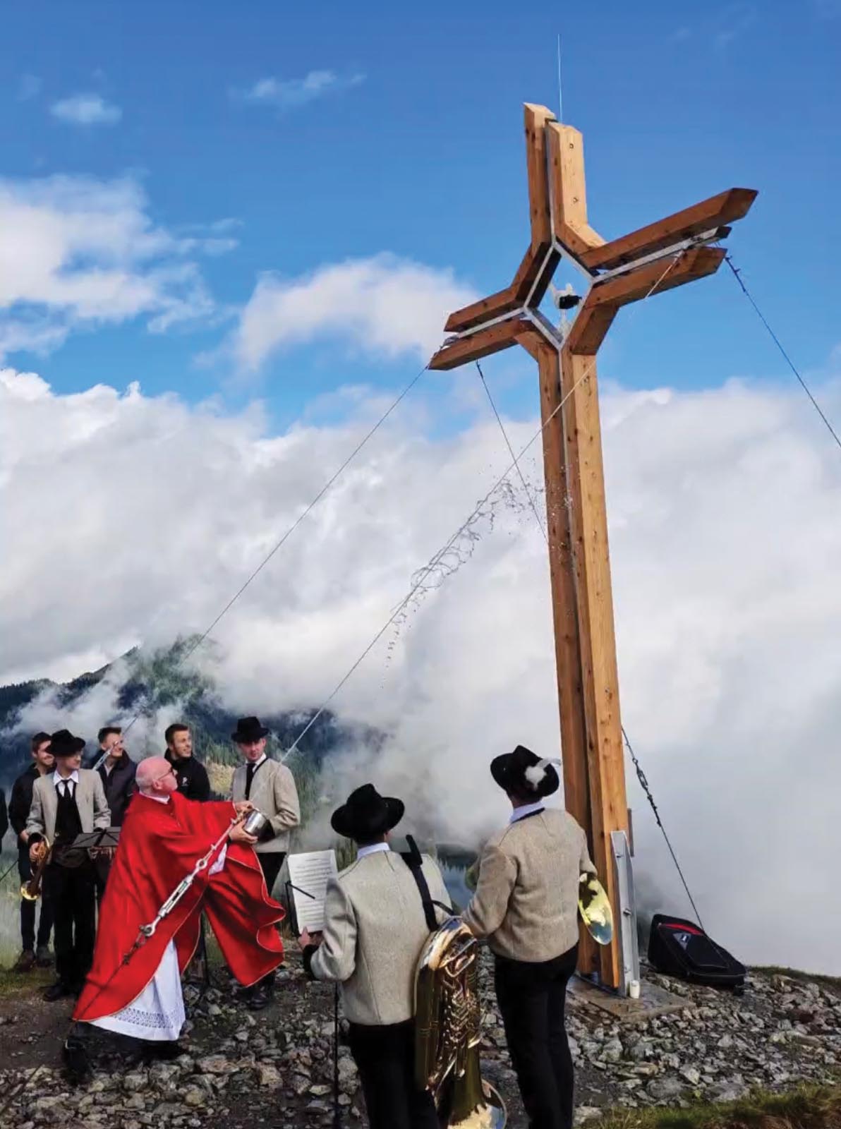 Glauben, Kirche und die christlichen Werte immer mehr an den Rand zu drängen. Das Kreuz und der Hahn erinnern uns daran, dass es der christliche Glaube und seine Werte waren und sind, die dieses Land zu dem gemacht haben, was es heute ist. Die zukünftigen Generationen werden in aller Freiheit entscheiden müssen, ob sie auf dem christlichen Pilgerweg in die Hoffnung hinein, auf diesem Glaubensweg der Mütter und Väter Tirols weitergehen, oder ob sie das sichere Haus auf dem Felsen verlassen, und lieber auf dem Sand des Egoismus und des Zeitgeistes ihr Haus bauen. Das neue Gipfelkreuz liebe Christen, ist ein starkes Zeichen unserer Jugend, dass sie sich für den richtigen Weg entscheiden wollen. Das sie den christlichen Pilgerweg so vieler Tiroler Generationen weitergehen wollen. Liebe Landjugend, liebe Jungbauern mit dem wunderschönen Gipfelkreuz sendet ihr zwei große Botschaften vom Gipfel hinaus ins Tal: Das Kreuz mit dem Hahn wird zum Mahnmal der Treue. Und zum Erinnerungszeichen.