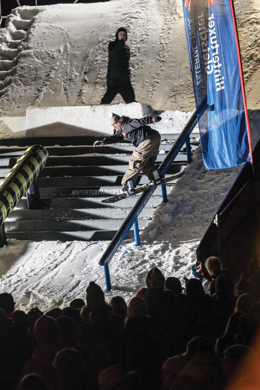Rock A Rail Tour-Auftakt 2025 beim legendären Hintertux Park Opening. Die besten Rider aus der offenen Qualifikation im Betterpark messen sich am Samstag am Parkplatz des Hintertuxer Gletschers beim ersten von fünf Stopps der internationalen Tour für Snowboarder und Freeskier. Foto: Monepic.at