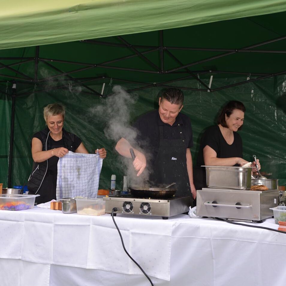 Ein besonderes Highlight des Tages war das „Restl-Schaukochen“ am Josef-Riedl-Platz. Haubenkoch Alexander Fankhauser zeigte eindrucksvoll, wie aus Lebensmitteln, die andernorts vielleicht keine Verwendung mehr gefunden hätten, köstliche Gerichte entstehen können.