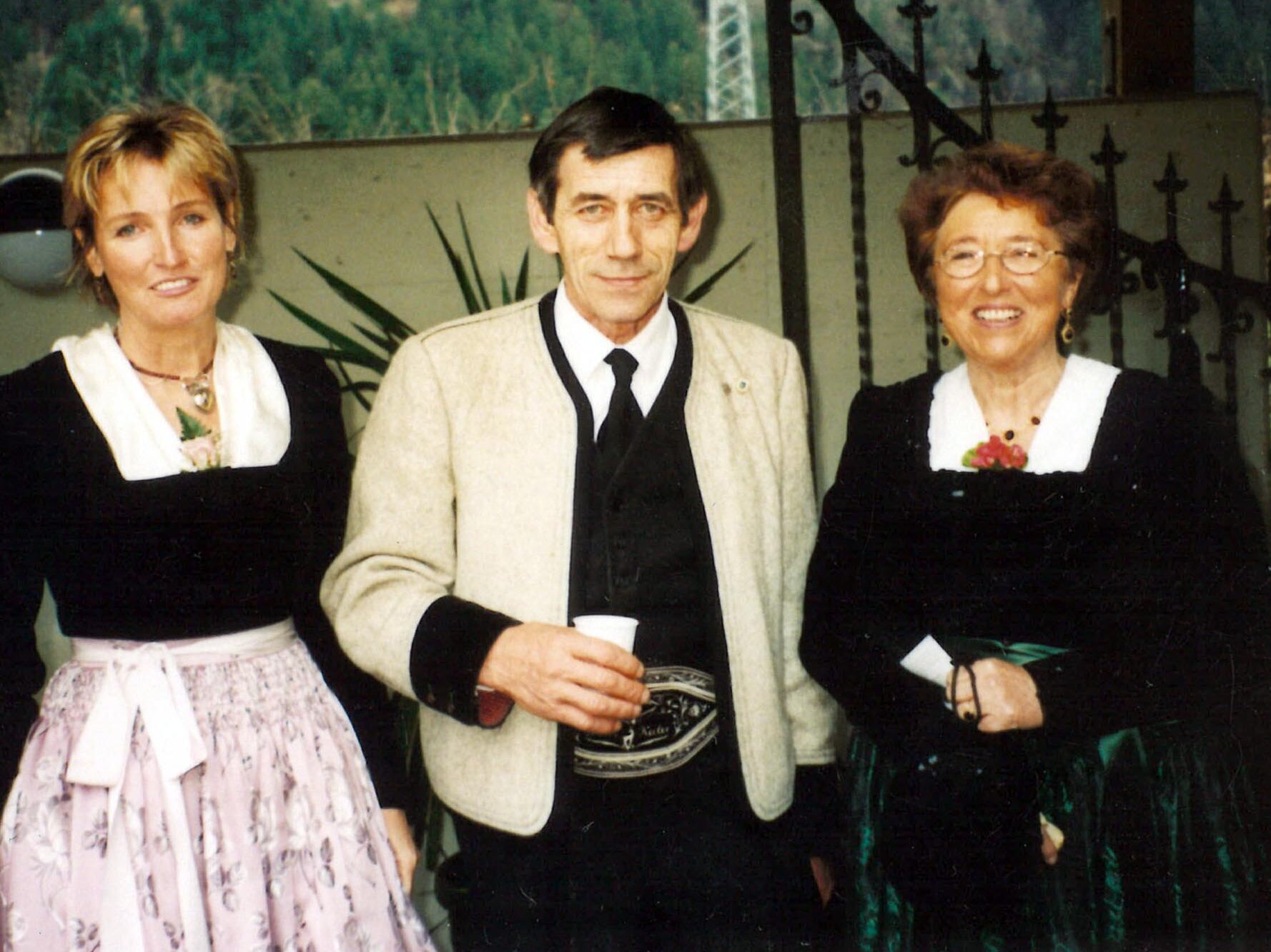 Franz Keiler mit Helga Blunder und Frieda Brugger aus Aschau (1999).