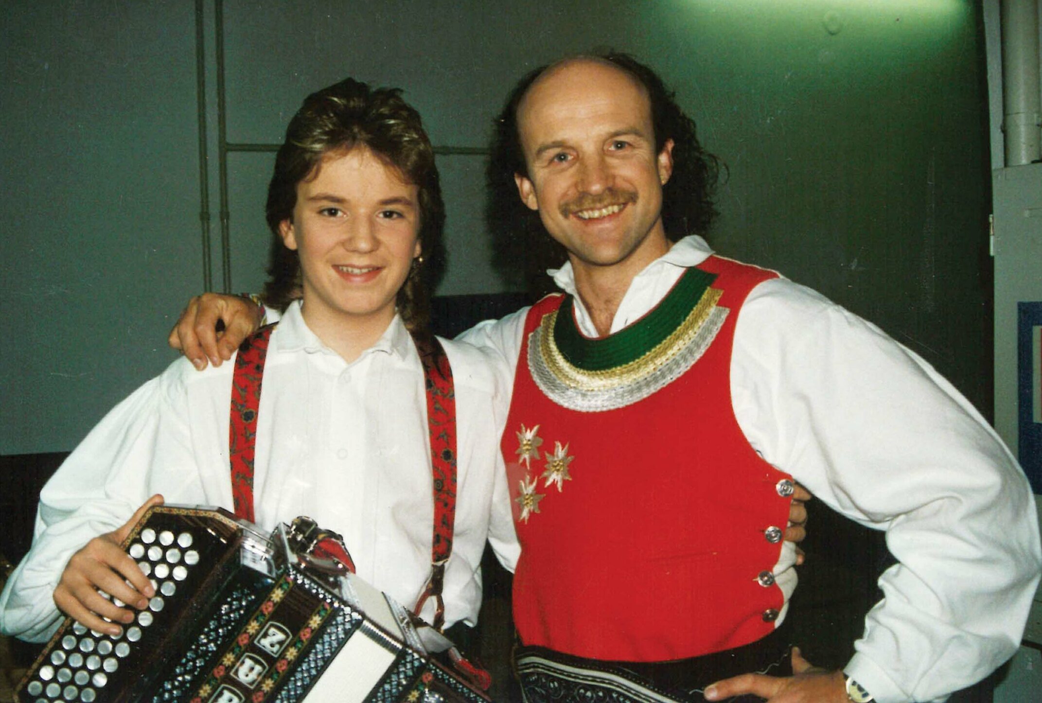 Florian Prantl (r.) mit „Kastelruther Spatzen“-Chef Norbert Rier, 1994