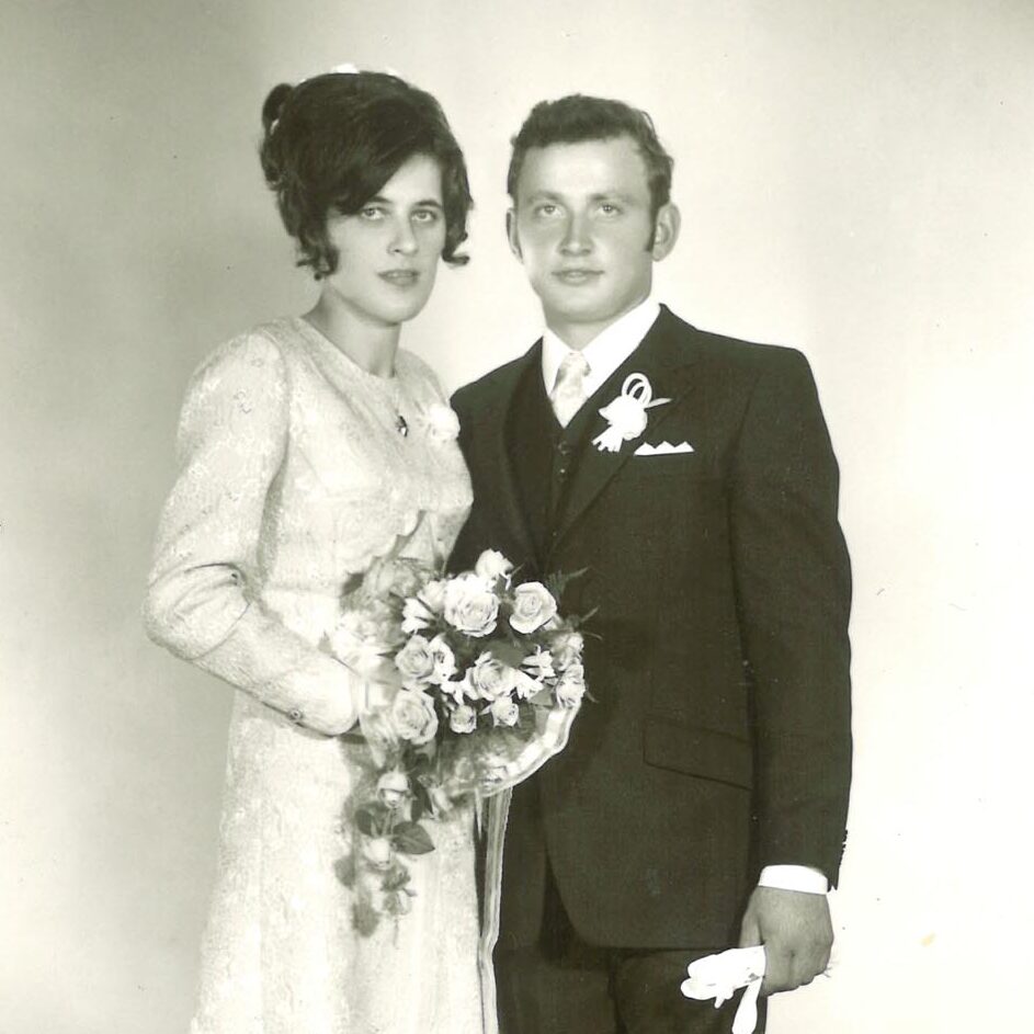 Hochzeitsbild von Hans-Peter und Maria Wasserer vom Stummerberg, die heuer ihre Goldene Hochzeit feiern können.