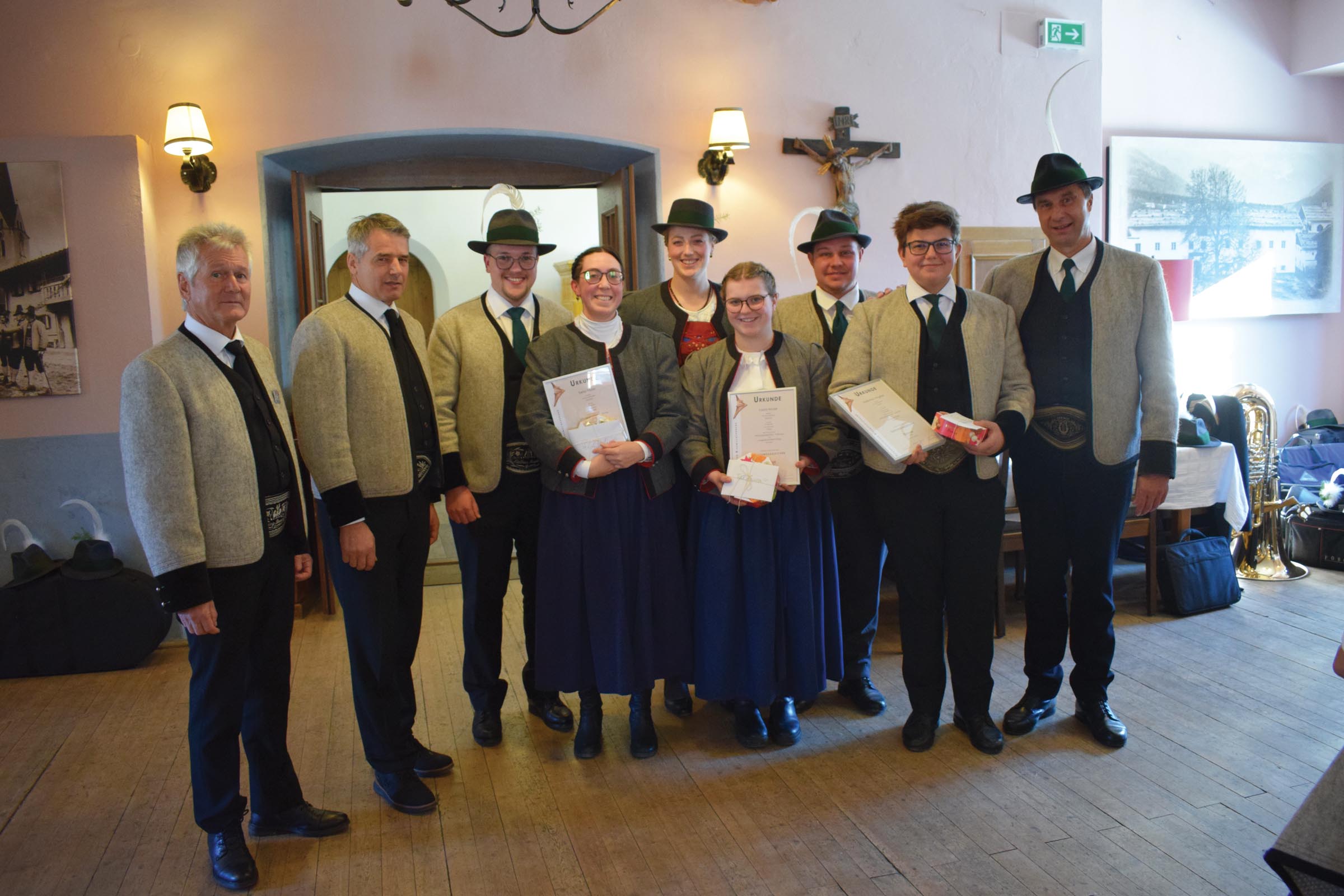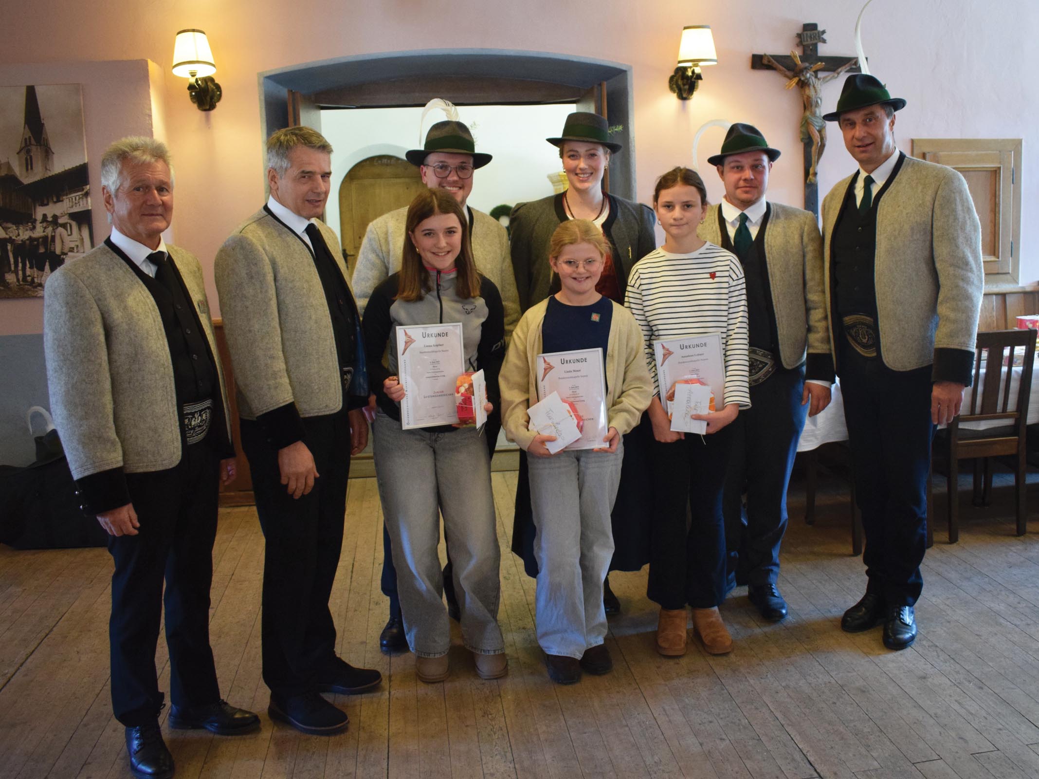 Erfreuliches konnte Obmann Hannes die Mitgliederzahl betreffend verkünden. Insgesamt hat die BMK nun 62 Musikan-tInnen und 9 Marketenderinnen, darunter auch dank der vortrefflichen Jugendarbeit von Mathias Stiegler und Valentina Garber zunehmend JungmusikantInnen. Von diesen galt es einige zu ehren: Emma Kupfner, Linda Moser und Annalena Leitner erhielten das Juniorleistungsabzeichen, Delia Pfister, Laura Moser und Maximilian Angerer das Leistungsabzeichen in Bronze.