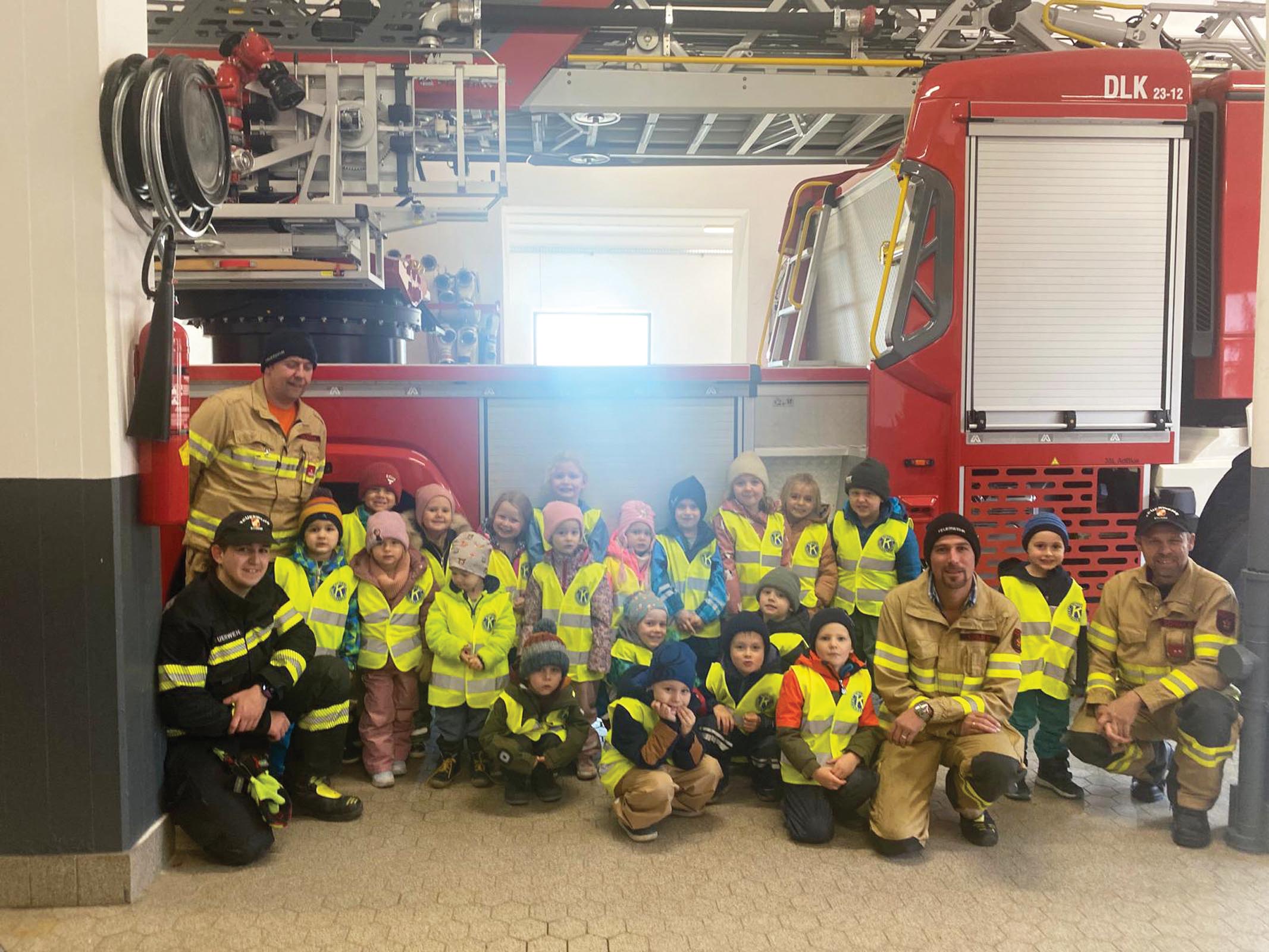 Ein besonderes Highlight war der Besuch bei der Stummer Feuerwehr. Die Kinder durften nicht nur das Feuerwehrhaus erkunden und Spannendes über die Arbeit der Feuerwehr erfahren, sondern auch eine aufregende Rundfahrt mit dem Feuerwehrauto erleben. Dieses Erlebnis wird den kleinen Feuerwehrfans sicher noch lange in Erinnerung bleiben.