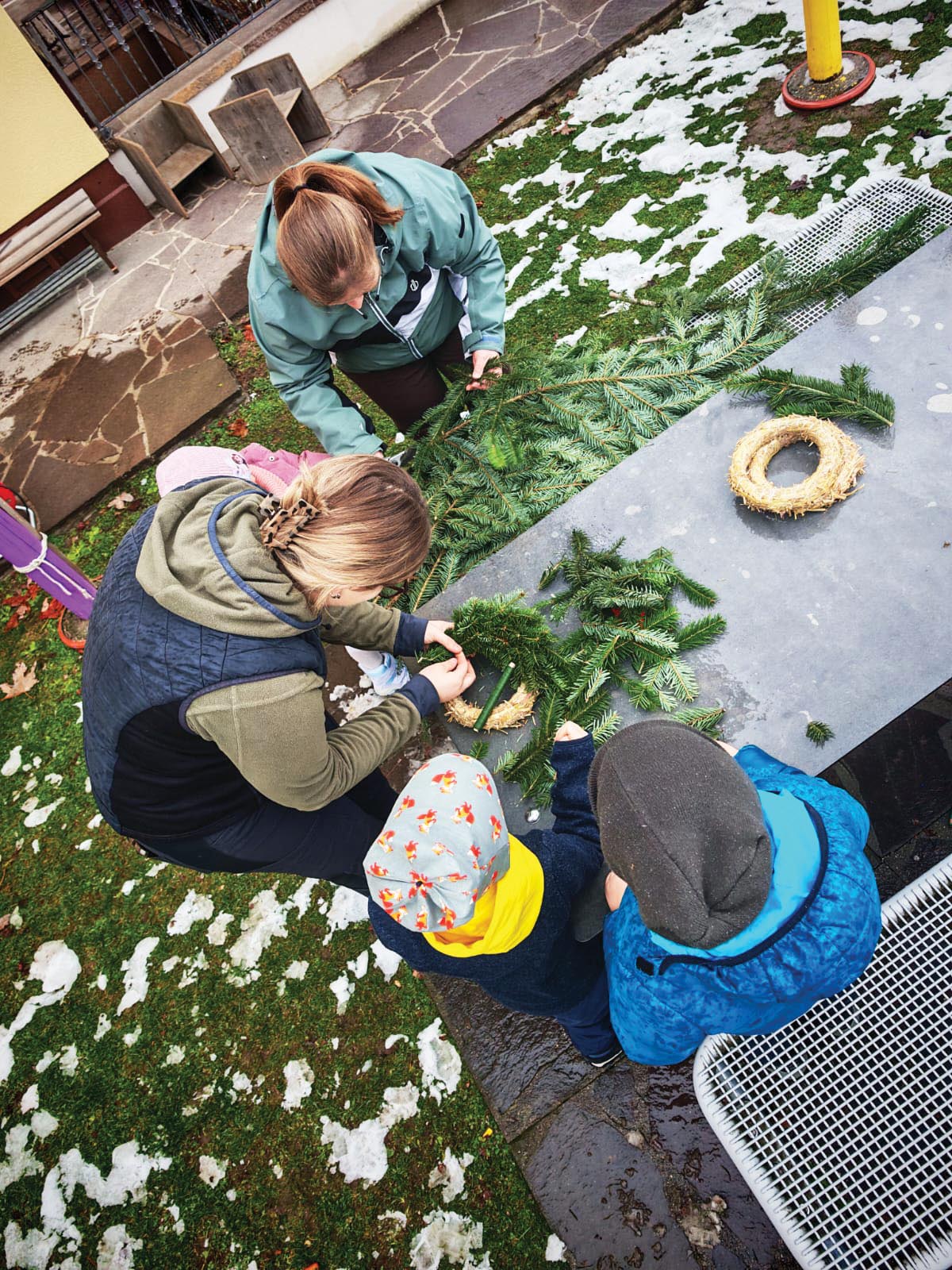 Auch der kreative Adventbeginn durfte nicht fehlen: Steffi und Natalie von der Firma Kerschdorfer besuchten den Kindergarten und gestaltete gemeinsam mit den Kindern wunderschöne Adventkränze. Mit viel Begeisterung wurde gebunden, dekoriert und gestaltet.