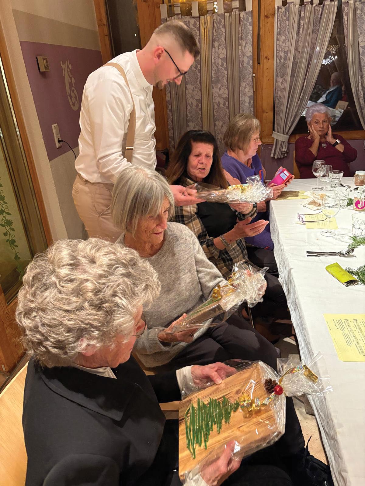 Darauf folgten die persönlichen Weihnachtswünsche unseres Pfarrers, der allen Anwesenden für ihre Verbundenheit mit unserem SR dankte und uns ermutigte, die Botschaft von Frieden und Hoffnung auch in den Alltag mitzunehmen. Anschließend wurde uns ein köstliches Menü serviert und niemand musste aufstehen, ohne satt geworden zu sein.