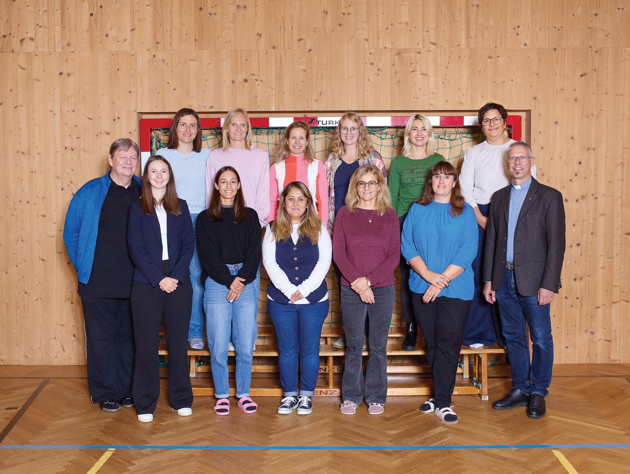 Claudia Pitkäniemi-Müller (1. Klasse), Stefan Rieser (2a Kl.), Hannah Kandler (2b Kl.), Elisabeth Steger (3a Kl.), Veronika Kainzner (3b Kl.), Ruth Klieber (4. Klasse), Elisabeth Plattner und Laura Geisler sowie Agnes Würtenberger und Kathrin Ender (beide Religion), Sandra Steinlechner und Nadine Eber-harter (Schulassistenz).