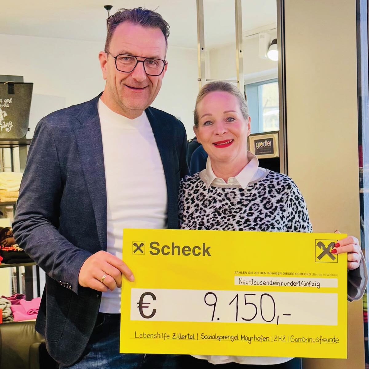 Anlässlich der gemeinsamen Geburtstagsfeier zeigten sich die Jubilarin und Jubilare auch sozial engagiert. Die eingegangenen Spenden wurden an die Lebenshilfe AV Zillertal, den Sozialsprengel Mayrhofen, die Gambrinusfreunde sowie an „Zillertaler helfen Zillertalern“ übergeben – herzliches Vergelt’s Gott!